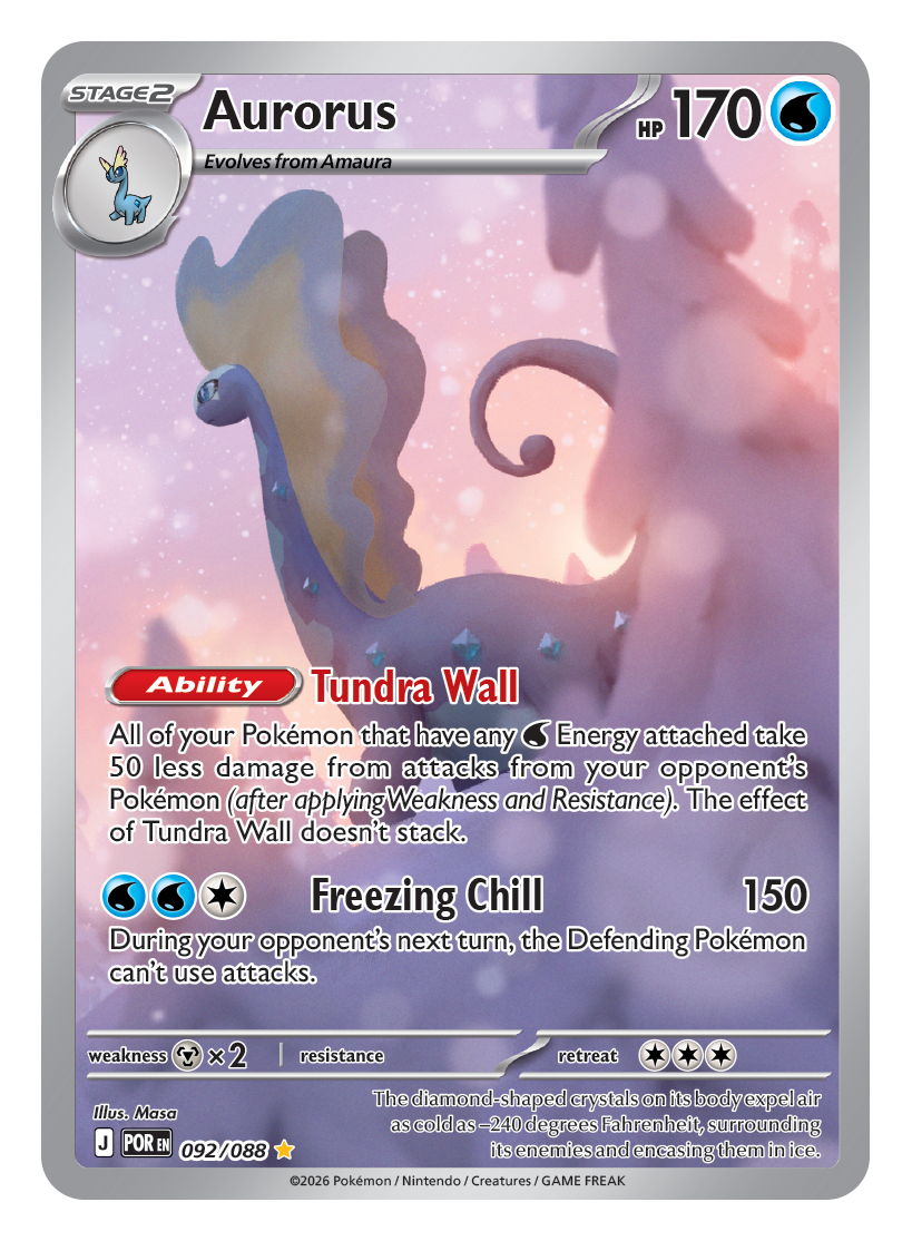 All of your Pokémon that have any {W} Energy attached take 50 less damage from attacks from your opponent’s Pokémon (after applying Weakness and Resistance). The effect of Tundra Wall doesn’t stack.