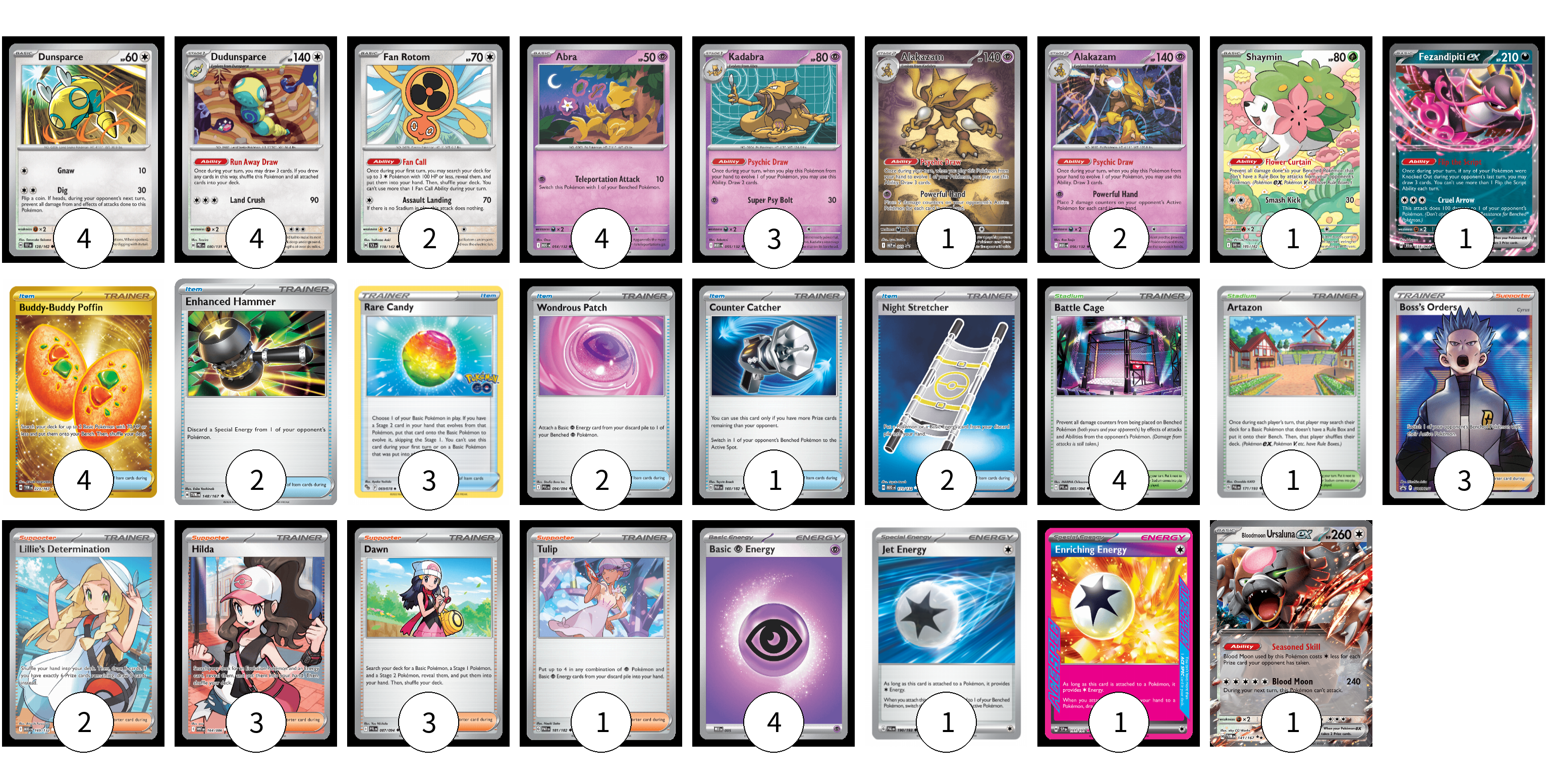 Card Name Number of Cards