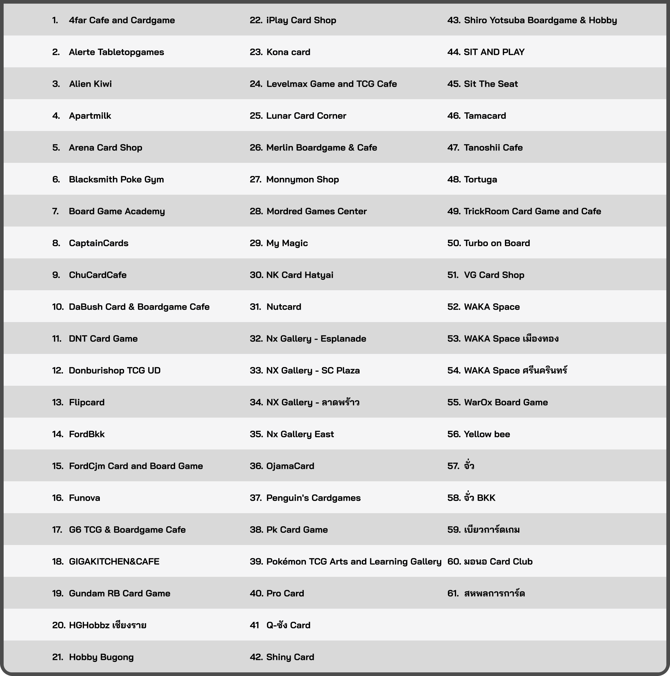 ร้านยิมโปเกมอนเทรดดิ้งการ์ดเกมที่เข้าร่วมรายการ