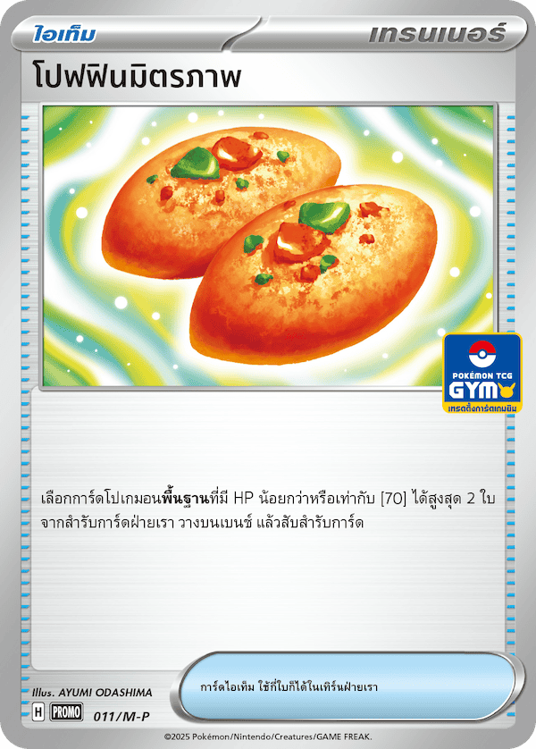 ในซองการ์ดโปรโมชุดที่ 1 ของซีรีส์ “โปเกมอนเทรดดิ้งการ์ดเกม วิวัฒนาการเมก้า” มีการ์ด 1 ใบจากทั้งหมด 12 แบบอยู่ในซอง