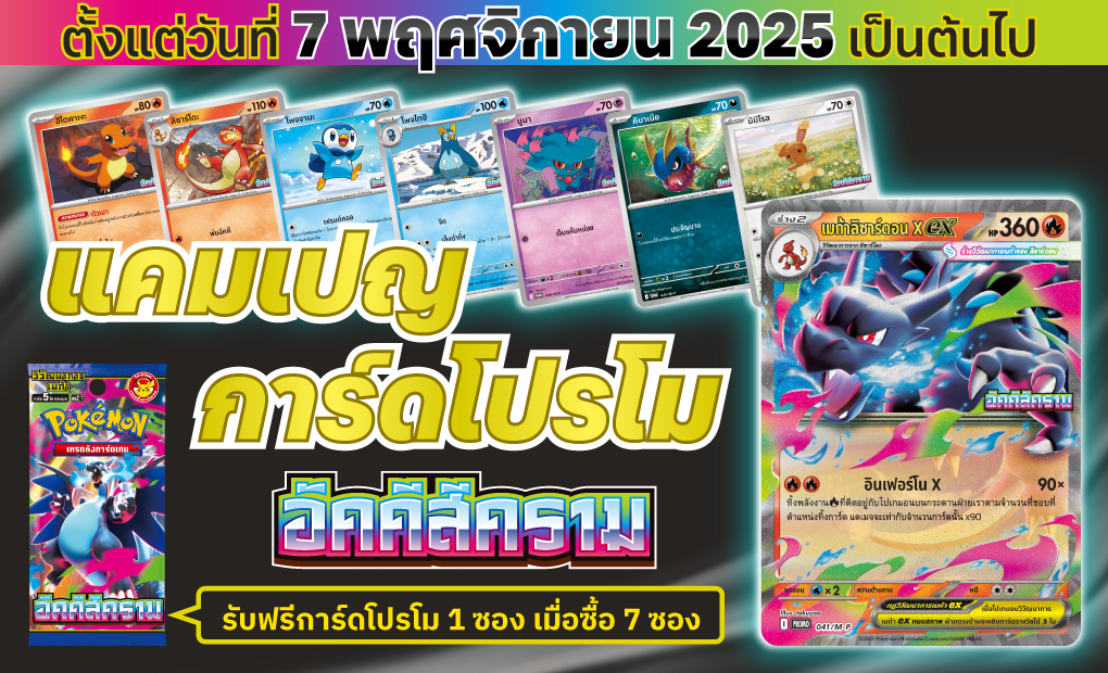 รับฟรีทันทีการ์ดโปรโมสุดพิเศษ เมื่อซื้อการ์ดชุดเสริม“อัคคีสีคราม”ที่จะวางจำหน่ายตั้งแต่วันที่ 7 พฤศจิกายน 2025