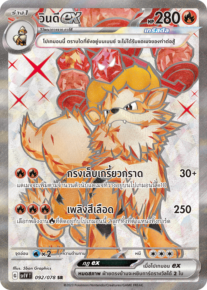 เลือกพลังงาน[ไฟ]ที่ติดอยู่กับโปเกมอนนี้ 2 ลูก ทิ้งที่ตำแหน่งทิ้งการ์ด
