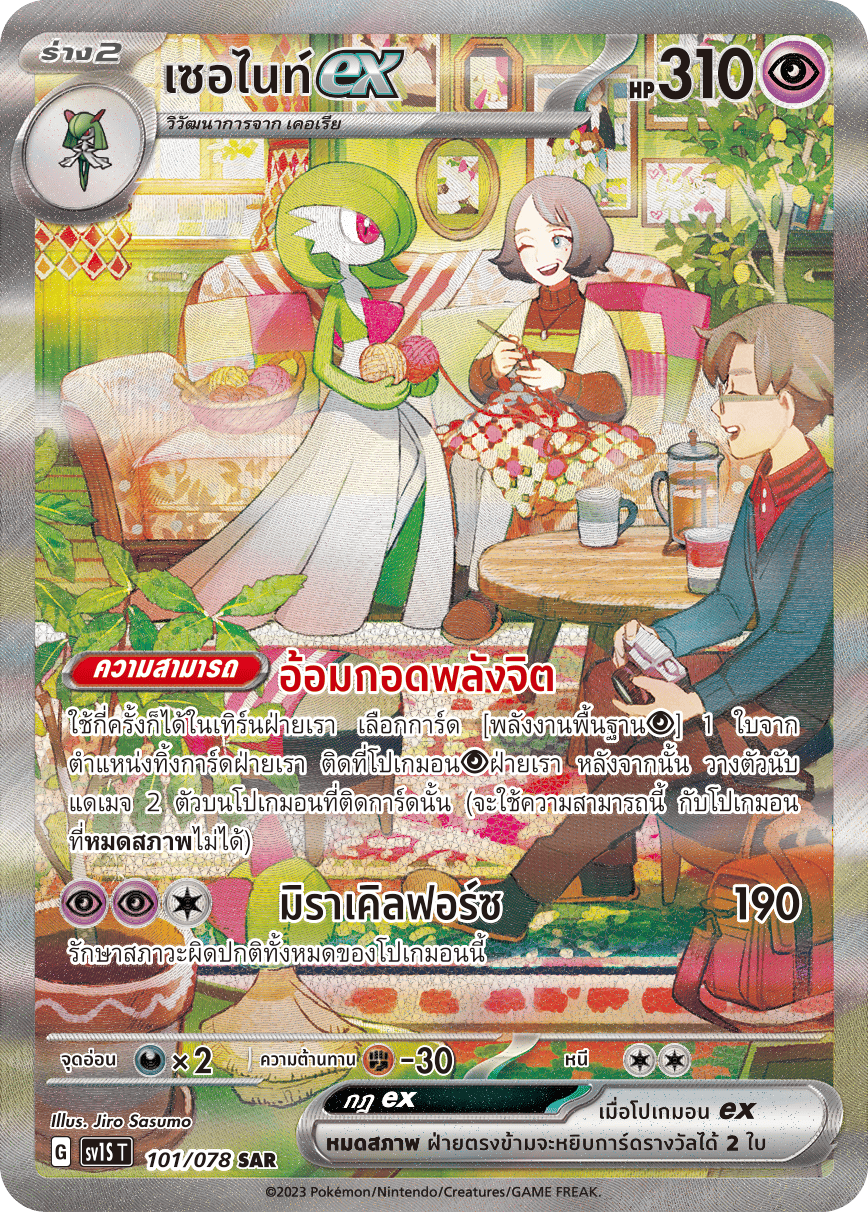 ใช้กี่ครั้งก็ได้ในเทิร์นฝ่ายเรา เลือกการ์ด [พลังงานพื้นฐาน[พลังจิต]] 1 ใบจากตำแหน่งทิ้งการ์ดฝ่ายเรา ติดที่โปเกมอน[พลังจิต]ฝ่ายเรา หลังจากนั้น วางตัวนับแดเมจ 2 ตัวบนโปเกมอนที่ติดการ์ดนั้น (จะใช้ความสามารถนี้ กับโปเกมอนที่[หมดสภาพ]ไม่ได้)