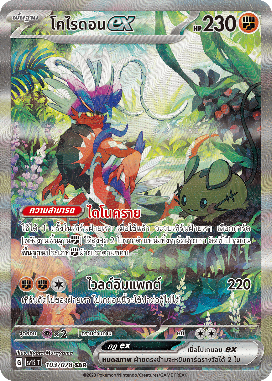 ใช้ได้ 1 ครั้งในเทิร์นฝ่ายเรา เมื่อใช้แล้ว จะจบเทิร์นฝ่ายเรา เลือกการ์ด [พลังงานพื้นฐาน[ต่อสู้]] ได้สูงสุด 2 ใบจากตำแหน่งทิ้งการ์ดฝ่ายเรา ติดที่โปเกมอน[พื้นฐาน]ประเภท[ต่อสู้]ฝ่ายเราตามชอบ