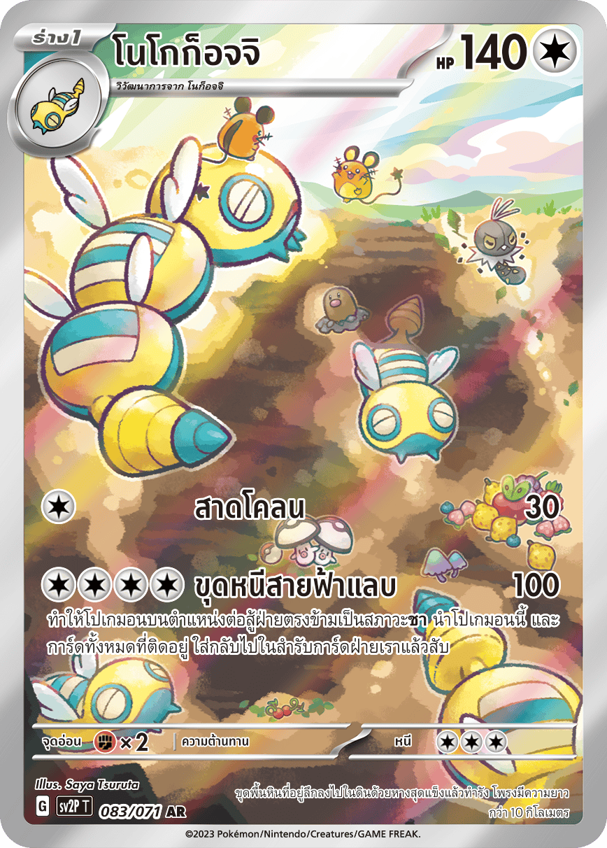 ทำให้โปเกมอนบนตำแหน่งต่อสู้ฝ่ายตรงข้ามเป็นสภาวะ[ชา] นำโปเกมอนนี้ และการ์ดทั้งหมดที่ติดอยู่ ใส่กลับไปในสำรับการ์ดฝ่ายเราแล้วสับ