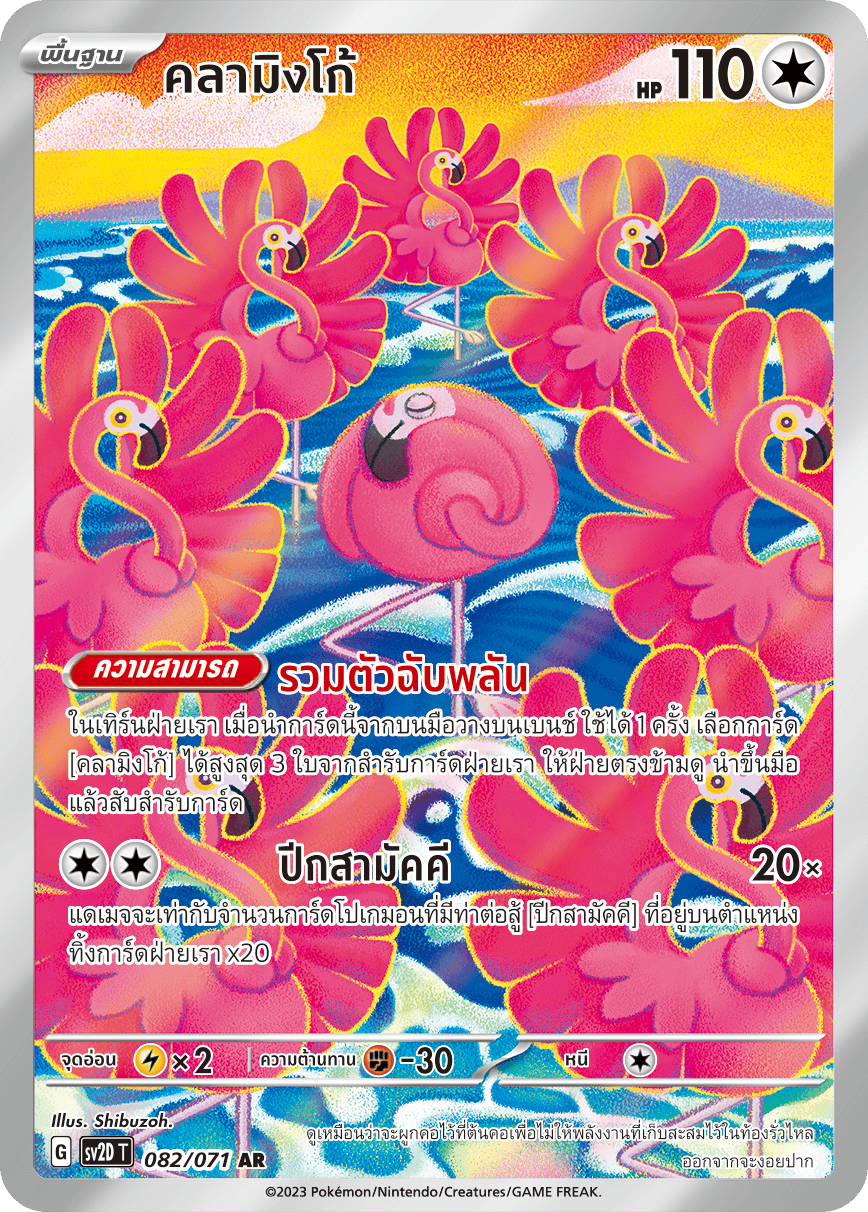 แดเมจจะเท่ากับจำนวนการ์ดโปเกมอนที่มีท่าต่อสู้ [ปีกสามัคคี] ที่อยู่บนตำแหน่งทิ้งการ์ดฝ่ายเรา x20