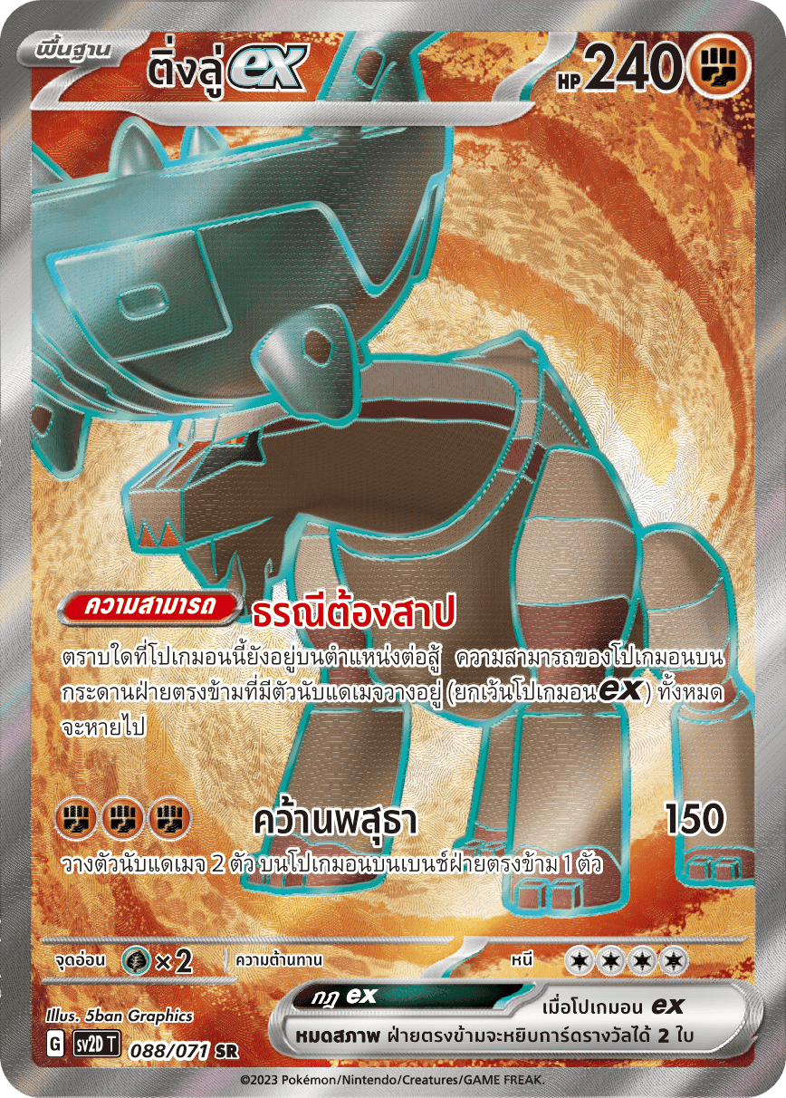 ตราบใดที่โปเกมอนนี้ยังอยู่บนตำแหน่งต่อสู้ ความสามารถของโปเกมอนบนกระดานฝ่ายตรงข้ามที่มีตัวนับแดเมจวางอยู่ (ยกเว้นโปเกมอน【ex】) ทั้งหมดจะหายไป