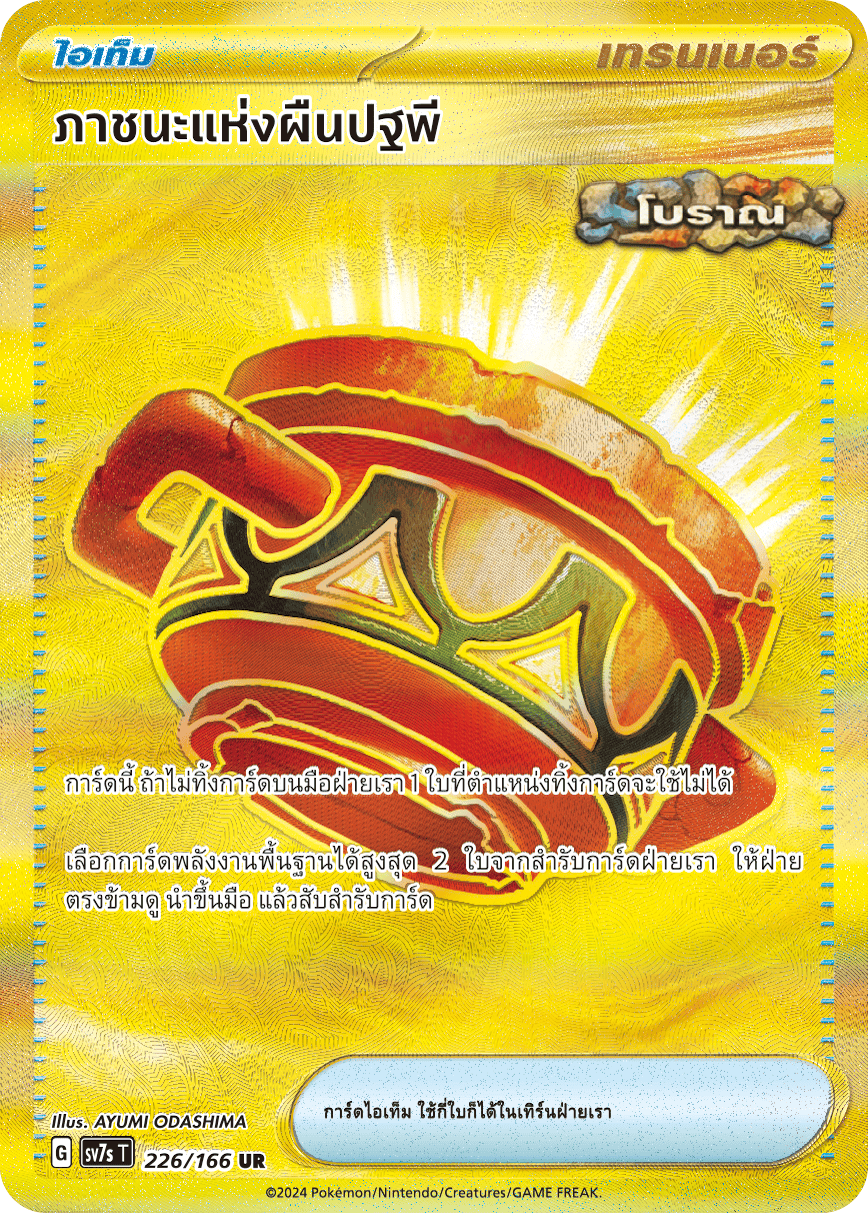การ์ดนี้ ถ้าไม่ทิ้งการ์ดบนมือฝ่ายเรา 1 ใบที่ตำแหน่งทิ้งการ์ดจะใช้ไม่ได้ เลือกการ์ดพลังงานพื้นฐานได้สูงสุด 2 ใบจากสำรับการ์ดฝ่ายเรา ให้ฝ่ายตรงข้ามดู นำขึ้นมือ แล้วสับสำรับการ์ด