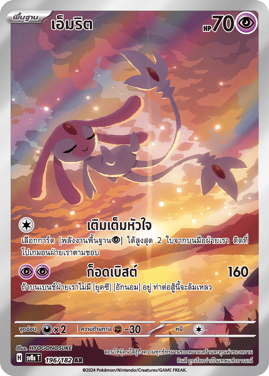 เลือกการ์ด [พลังงานพื้นฐาน[พลังจิต]] ได้สูงสุด 2 ใบจากบนมือฝ่ายเรา ติดที่ โปเกมอนฝ่ายเราตามชอบ