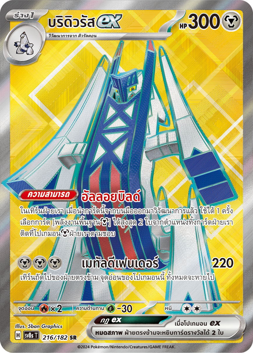 ในเทิร์นฝ่ายเรา เมื่อนำการ์ดนี้จากบนมือออกมาวิวัฒนาการแล้ว ใช้ได้ 1 ครั้ง เลือกการ์ด [พลังงานพื้นฐาน[โลหะ]] ได้สูงสุด 2 ใบจากตำแหน่งทิ้งการ์ดฝ่ายเรา ติดที่โปเกมอน[โลหะ]ฝ่ายเราตามชอบ