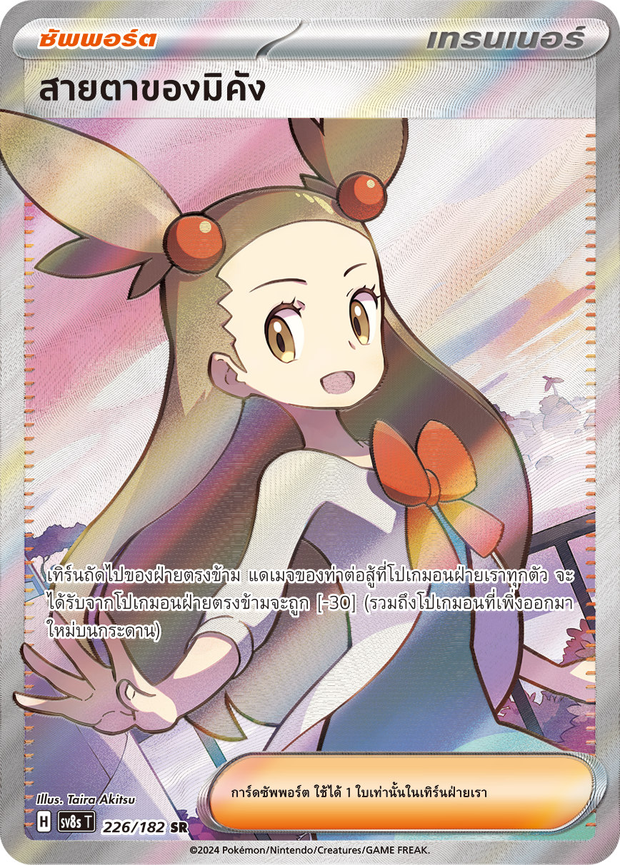 เทิร์นถัดไปของฝ่ายตรงข้าม แดเมจของท่าต่อสู้ที่โปเกมอนฝ่ายเราทุกตัว จะ ได้รับจากโปเกมอนฝ่ายตรงข้ามจะถูก [-30] (รวมถึงโปเกมอนที่เพิ่งออกมา ใหม่บนกระดาน)