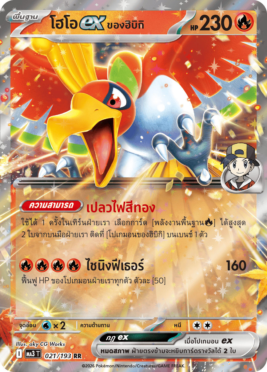 ใช้ได้ 1 ครั้งในเทิร์นฝ่ายเรา เลือกการ์ด [พลังงานพื้นฐาน[ไฟ]] ได้สูงสุด 2 ใบจากบนมือฝ่ายเรา ติดที่ [โปเกมอนของฮิบิกิ] บนเบนช์ 1 ตัว