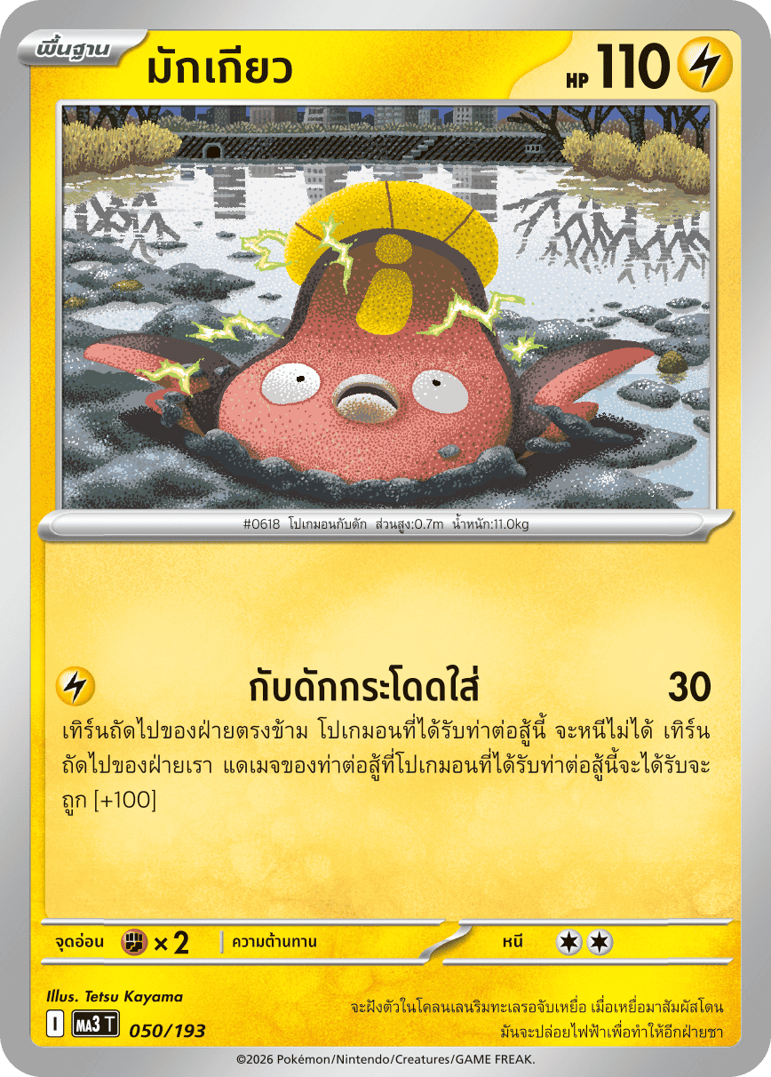 เทิร์นถัดไปของฝ่ายตรงข้าม โปเกมอนที่ได้รับท่าต่อสู้นี้ จะหนีไม่ได้ เทิร์น ถัดไปของฝ่ายเรา แดเมจของท่าต่อสู้ที่โปเกมอนที่ได้รับท่าต่อสู้นี้จะได้รับจะ ถูก [+100]