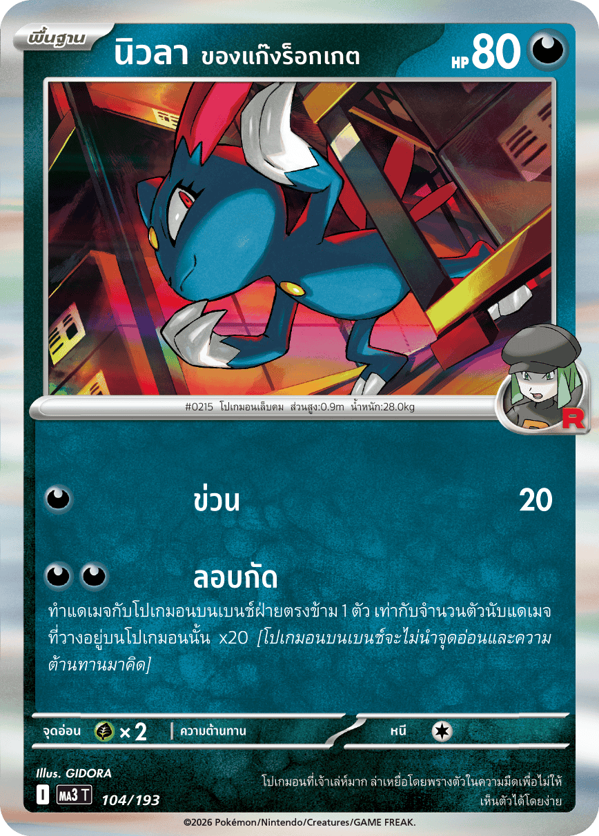 โปเกมอนที่เจ้าเล่ห์มาก ล่าเหยื่อ โดยพรางตัวในความมืดเพื่อไม่ให้ เห็นตัวได้โดยง่าย