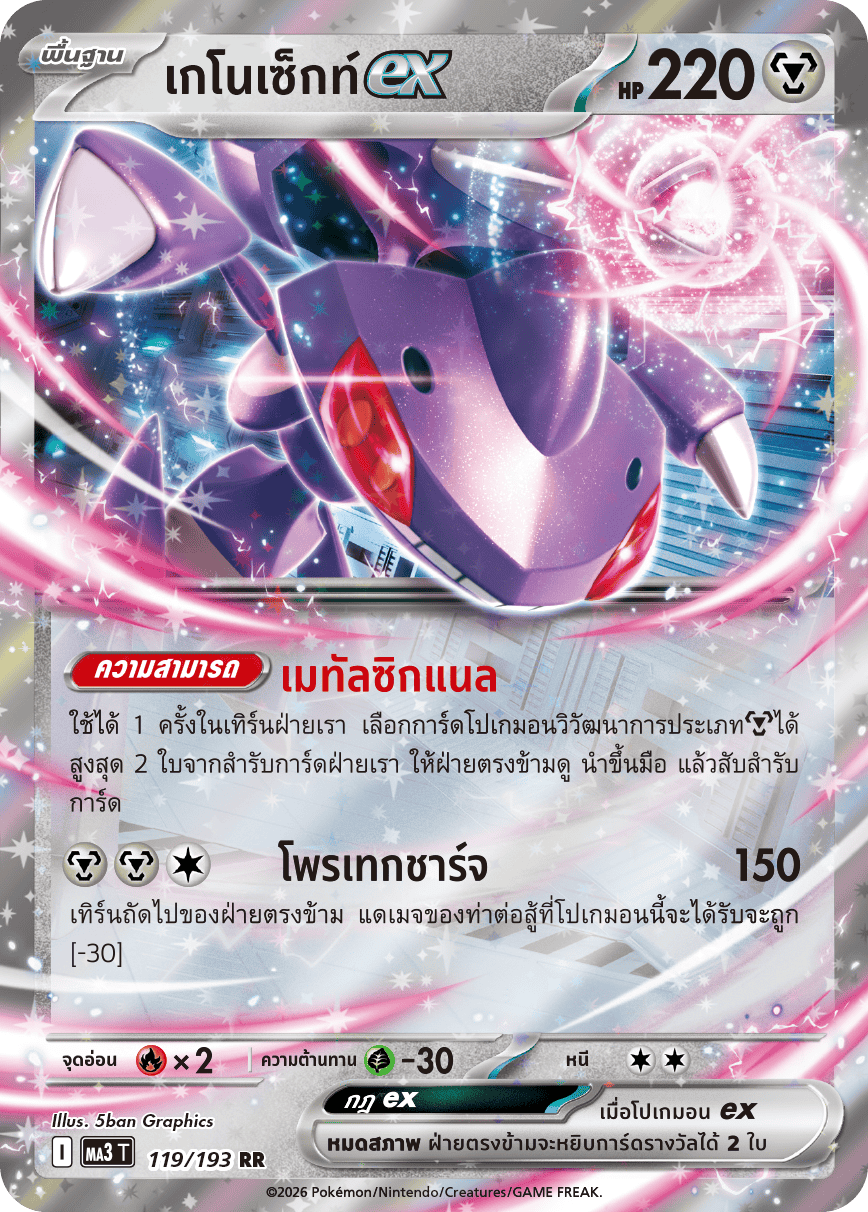 ใช้ได้ 1 ครั้งในเทิร์นฝ่ายเรา เลือกการ์ดโปเกมอนวิวัฒนาการประเภท[โลหะ]ได้ สูงสุด 2 ใบจากสำรับการ์ดฝ่ายเรา ให้ฝ่ายตรงข้ามดู นำขึ้นมือ แล้วสับสำรับ การ์ด