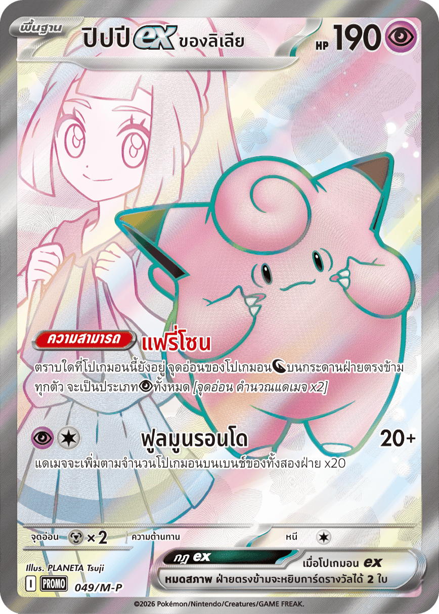 ตราบใดที่โปเกมอนนี้ยังอยู่ จุดอ่อนของโปเกมอน[มังกร]บนกระดานฝ่ายตรงข้าม ทุกตัว จะเป็นประเภท[พลังจิต]ทั้งหมด {จุดอ่อน คำนวณแดเมจ x2}