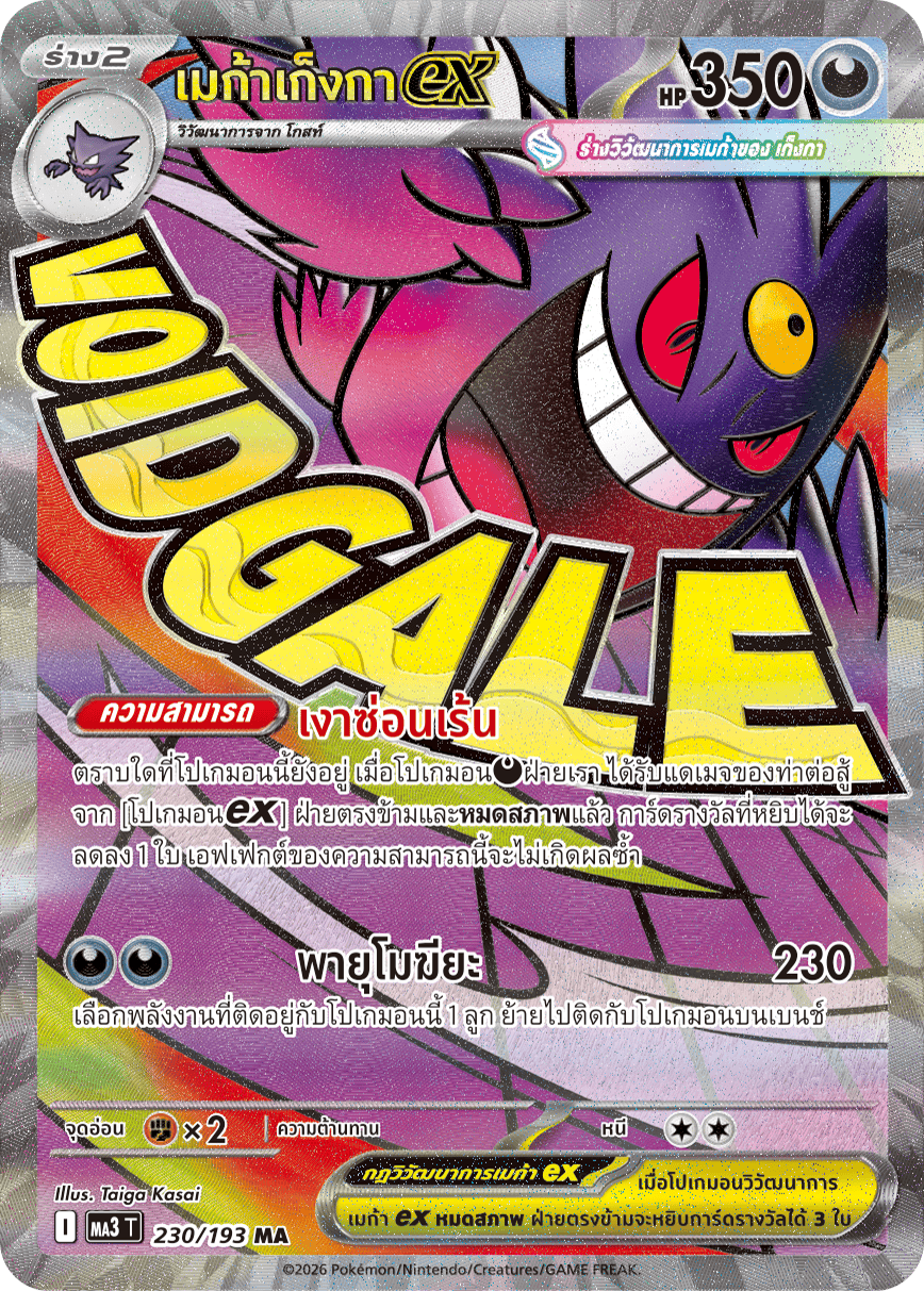 ตราบใดที่โปเกมอนนี้ยังอยู่ เมื่อโปเกมอน[ความมืด]ฝ่ายเรา ได้รับแดเมจของท่าต่อสู้ จาก [โปเกมอน【ex】] ฝ่ายตรงข้ามและ[หมดสภาพ]แล้ว การ์ดรางวัลที่หยิบได้จะ ลดลง 1 ใบ เอฟเฟกต์ของความสามารถนี้จะไม่เกิดผลซ้ำ