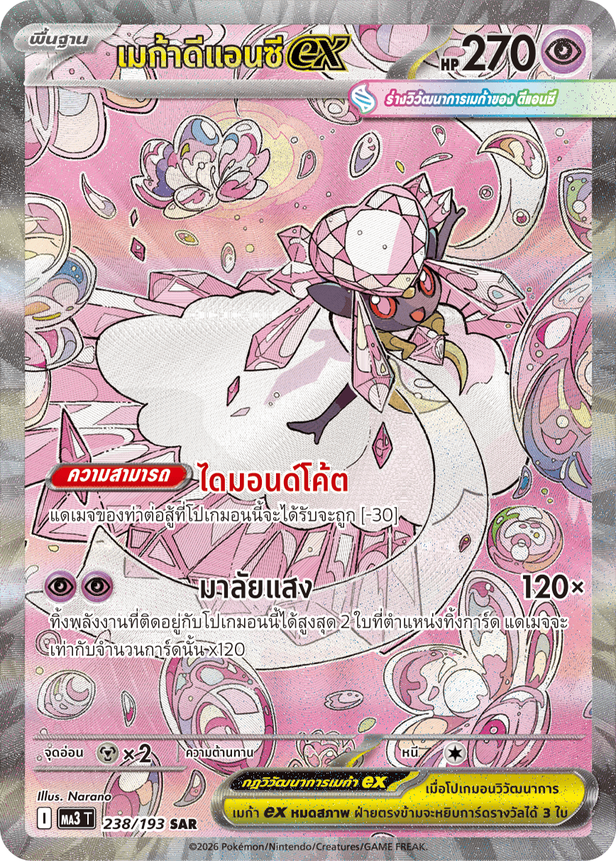 ทิ้งพลังงานที่ติดอยู่กับโปเกมอนนี้ได้สูงสุด 2 ใบที่ตำแหน่งทิ้งการ์ด แดเมจจะ เท่ากับจำนวนการ์ดนั้น x120