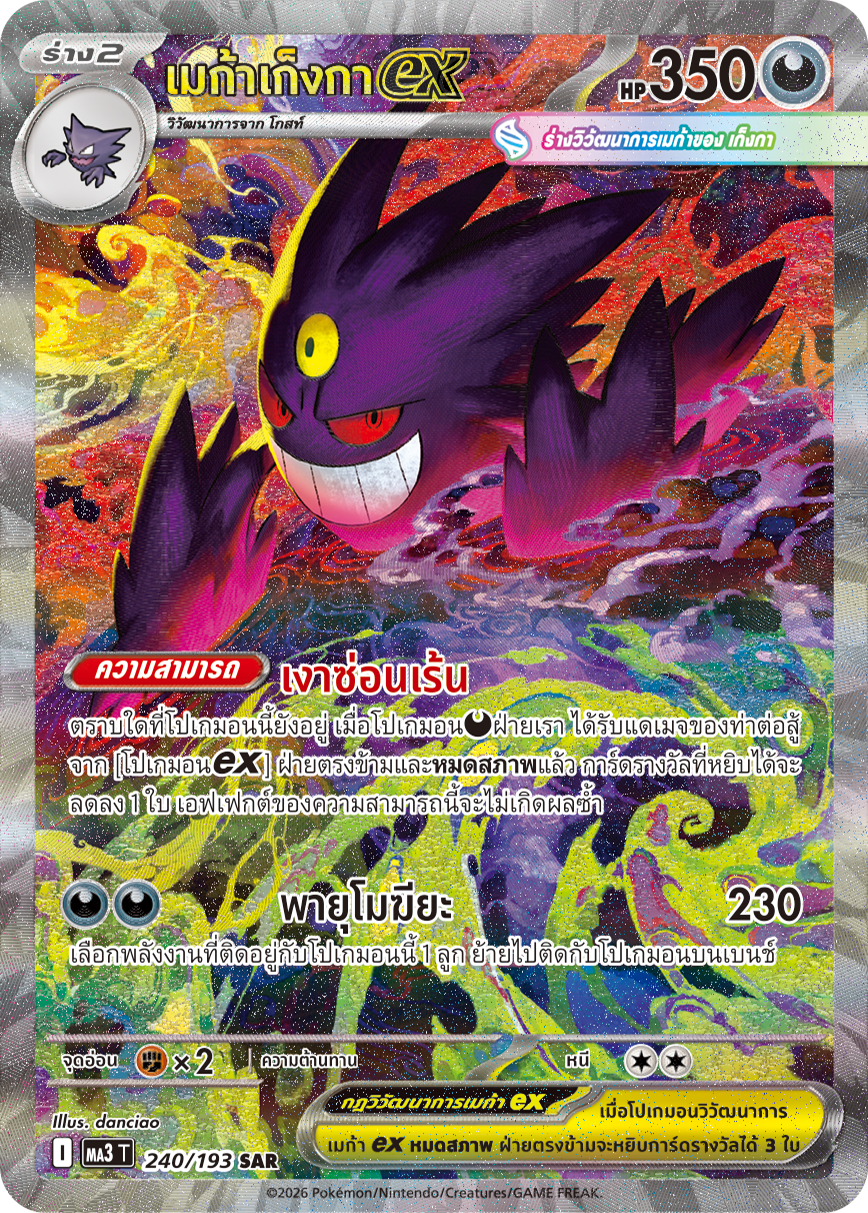 ตราบใดที่โปเกมอนนี้ยังอยู่ เมื่อโปเกมอน[ความมืด]ฝ่ายเรา ได้รับแดเมจของท่าต่อสู้ จาก [โปเกมอน【ex】] ฝ่ายตรงข้ามและ[หมดสภาพ]แล้ว การ์ดรางวัลที่หยิบได้จะ ลดลง 1 ใบ เอฟเฟกต์ของความสามารถนี้จะไม่เกิดผลซ้ำ