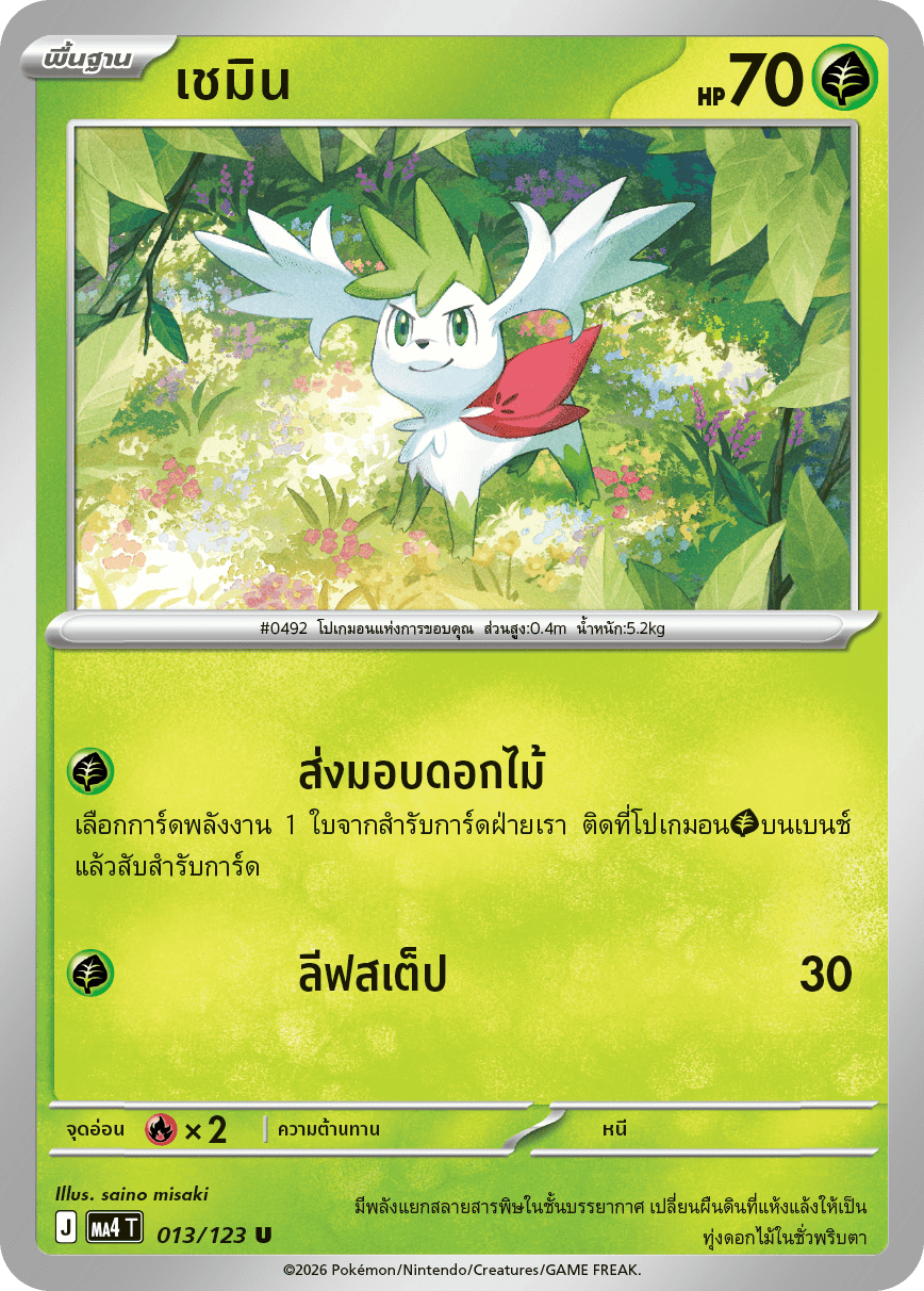 เลือกการ์ดพลังงาน 1 ใบจากสำรับการ์ดฝ่ายเรา ติดที่โปเกมอน[หญ้า]บนเบนช์ แล้วสับสำรับการ์ด