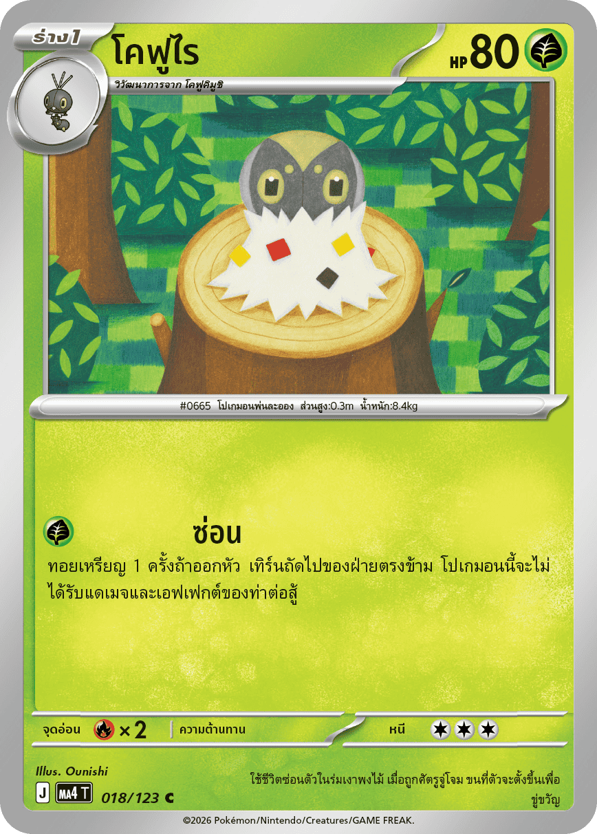 ทอยเหรียญ 1 ครั้งถ้าออกหัว เทิร์นถัดไปของฝ่ายตรงข้าม โปเกมอนนี้จะไม่ ได้รับแดเมจและเอฟเฟกต์ของท่าต่อสู้