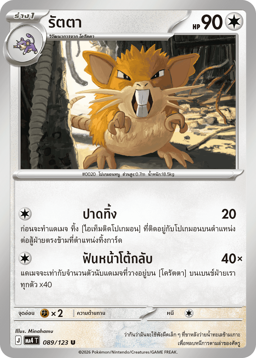 ก่อนจะทำแดเมจ ทิ้ง [ไอเท็มติดโปเกมอน] ที่ติดอยู่กับโปเกมอนบนตำแหน่ง ต่อสู้ฝ่ายตรงข้ามที่ตำแหน่งทิ้งการ์ด