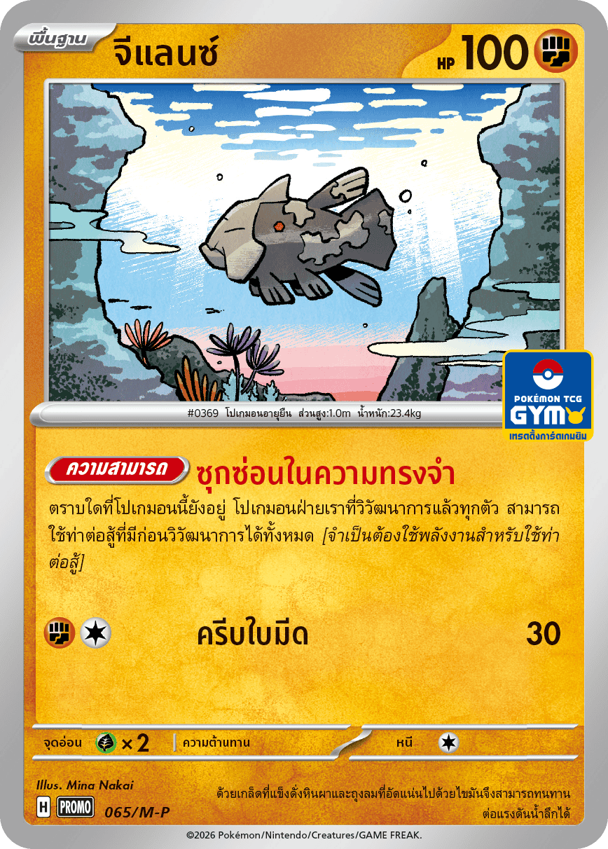 ตราบใดที่โปเกมอนนี้ยังอยู่ โปเกมอนฝ่ายเราที่วิวัฒนาการแล้วทุกตัว สามารถ ใช้ท่าต่อสู้ที่มีก่อนวิวัฒนาการได้ทั้งหมด {จำเป็นต้องใช้พลังงานสำหรับใช้ท่า ต่อสู้}