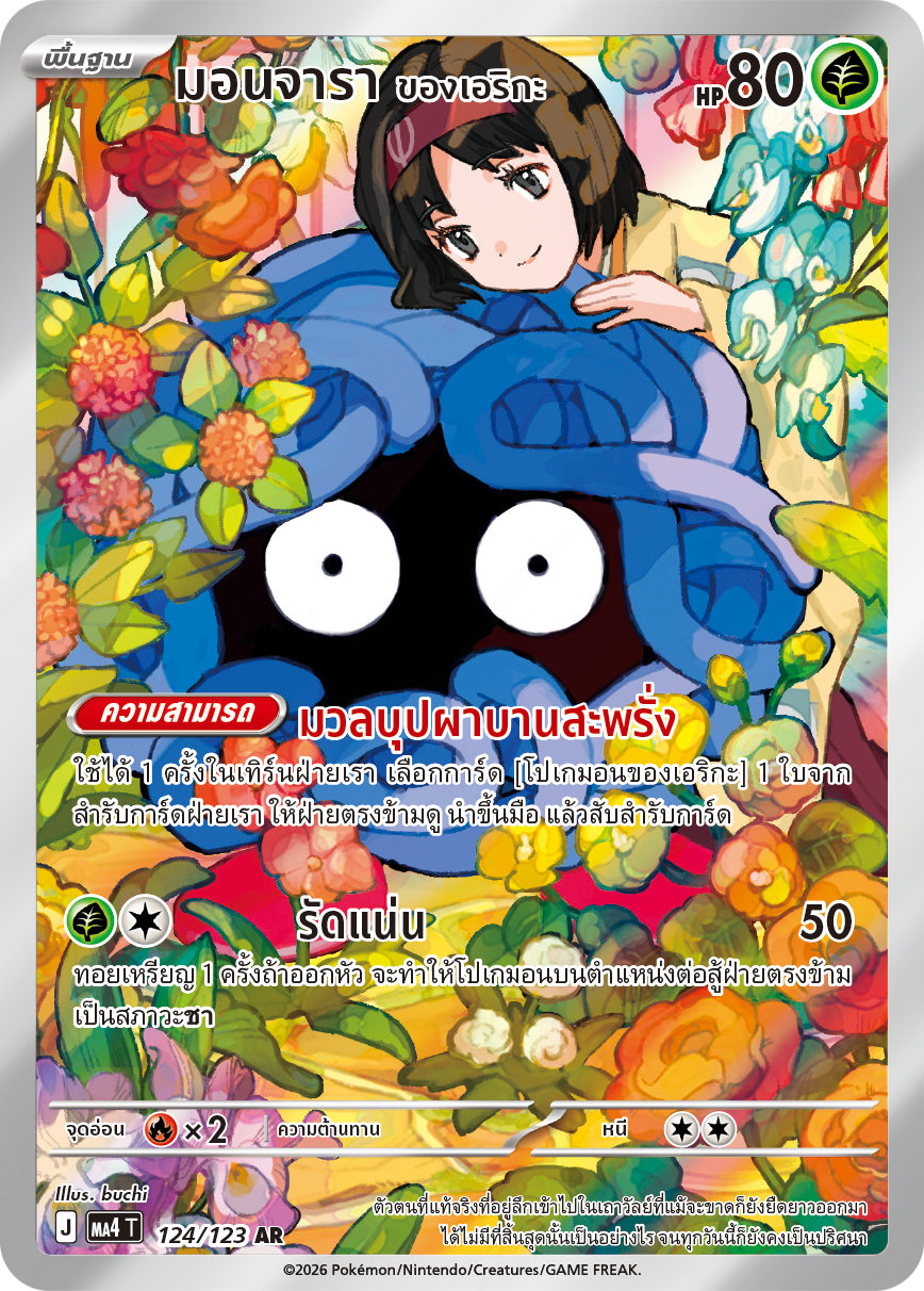 ใช้ได้ 1 ครั้งในเทิร์นฝ่ายเรา เลือกการ์ด [โปเกมอนของเอริกะ] 1 ใบจาก สำรับการ์ดฝ่ายเรา ให้ฝ่ายตรงข้ามดู นำขึ้นมือ แล้วสับสำรับการ์ด