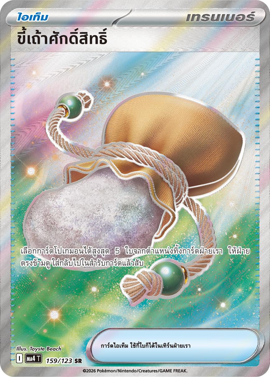 เลือกการ์ดโปเกมอนได้สูงสุด 5 ใบจากตำแหน่งทิ้งการ์ดฝ่ายเรา ให้ฝ่าย ตรงข้ามดู ใส่กลับไปในสำรับการ์ดแล้วสับ