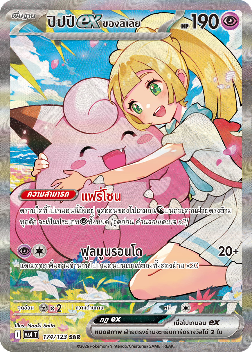 ตราบใดที่โปเกมอนนี้ยังอยู่ จุดอ่อนของโปเกมอน[มังกร]บนกระดานฝ่ายตรงข้าม ทุกตัว จะเป็นประเภท[พลังจิต]ทั้งหมด {จุดอ่อน คำนวณแดเมจ x2}