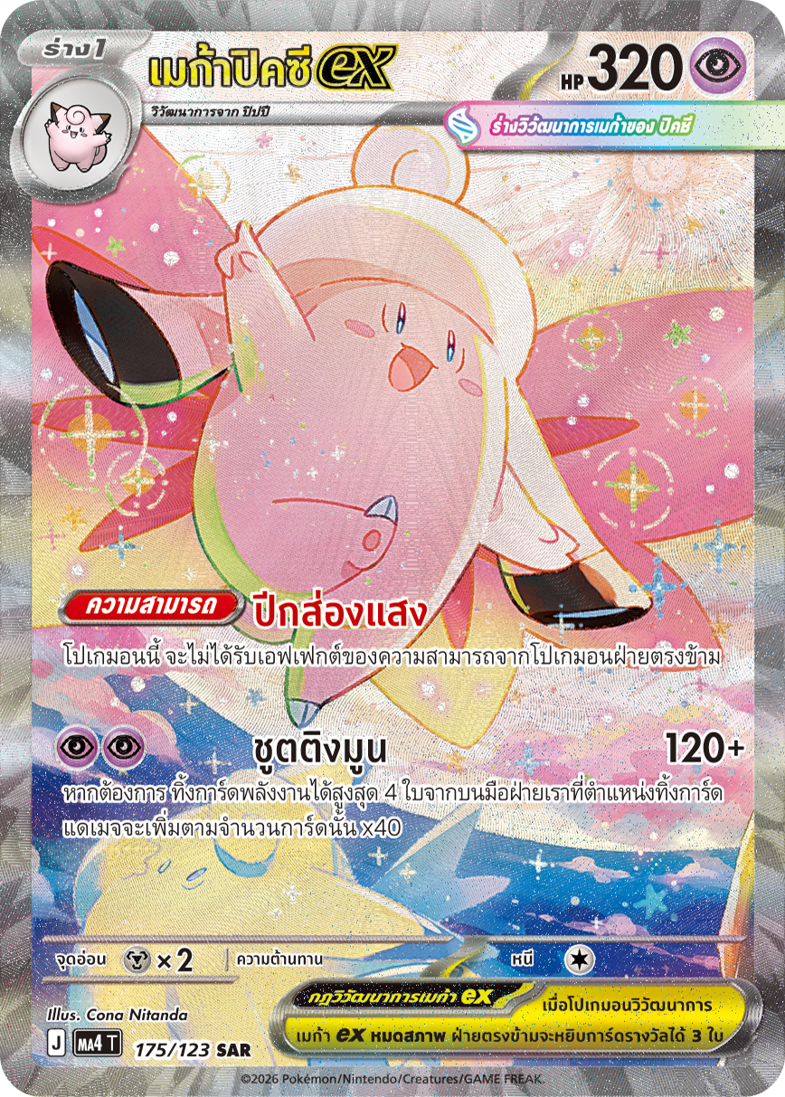 หากต้องการ ทิ้งการ์ดพลังงานได้สูงสุด 4 ใบจากบนมือฝ่ายเราที่ตำแหน่งทิ้งการ์ด แดเมจจะเพิ่มตามจำนวนการ์ดนั้น x40