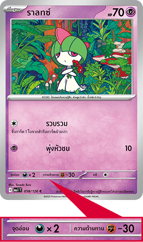 แตเมจที่ราลทซ์จะได้รับจากโปเกมอนประเภทต่อสู้จะถูก [-30]