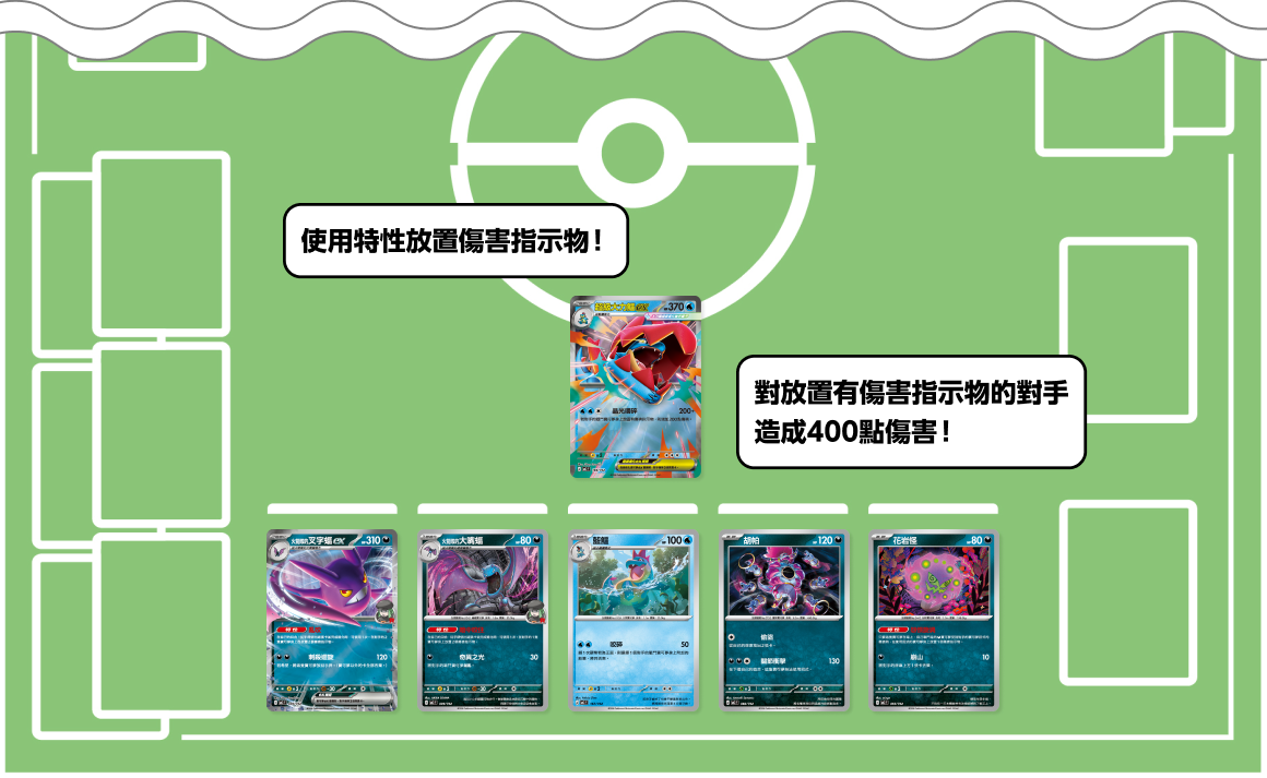 擁有可以在進化時選擇對手的寶可夢,在其身上放置傷害指示物的特性。若針對剩餘HP少的寶可夢,有可能僅靠特性就將其昏厥。