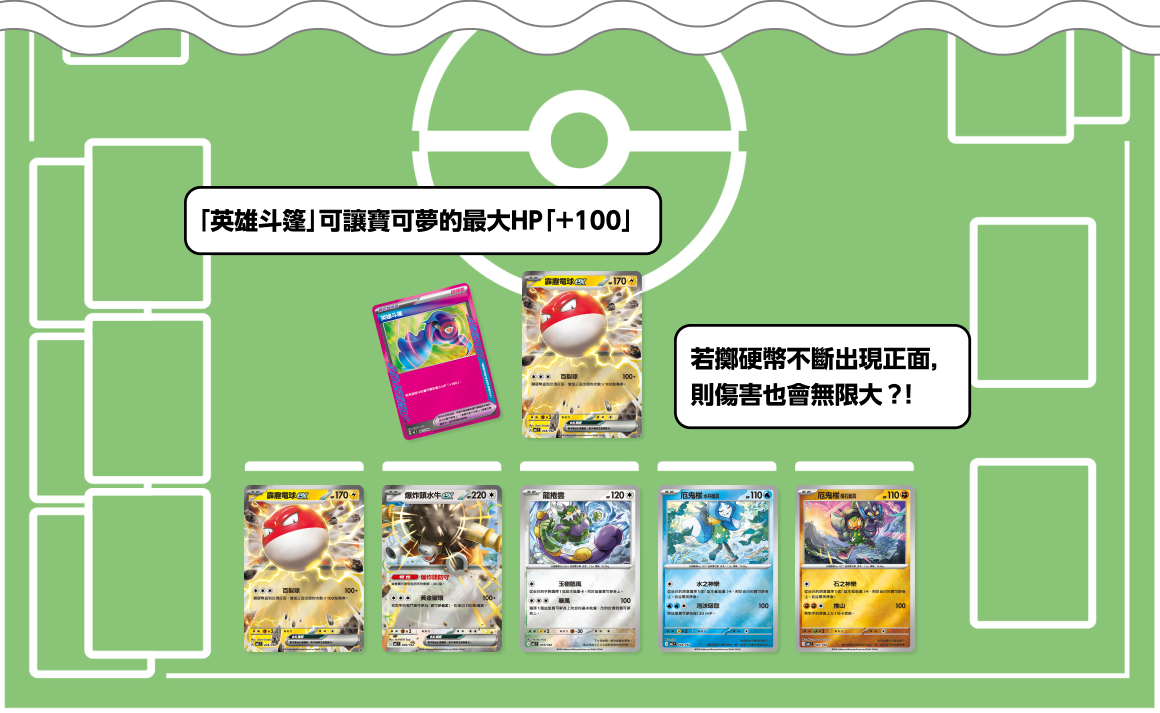 霹靂電球ex的招式「百裂球」的巨大傷害,是這副牌組的魅力所在。使用持有強力招式的霹靂電球ex,任何對手或許都能一擊將其「昏厥」。
