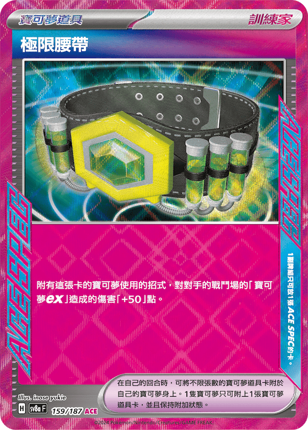 「ACE SPEC」的寶可夢道具卡。附有這張卡的寶可夢使用的招式,對對手的戰鬥場的「寶可夢ex」造成的傷害「+50」點。