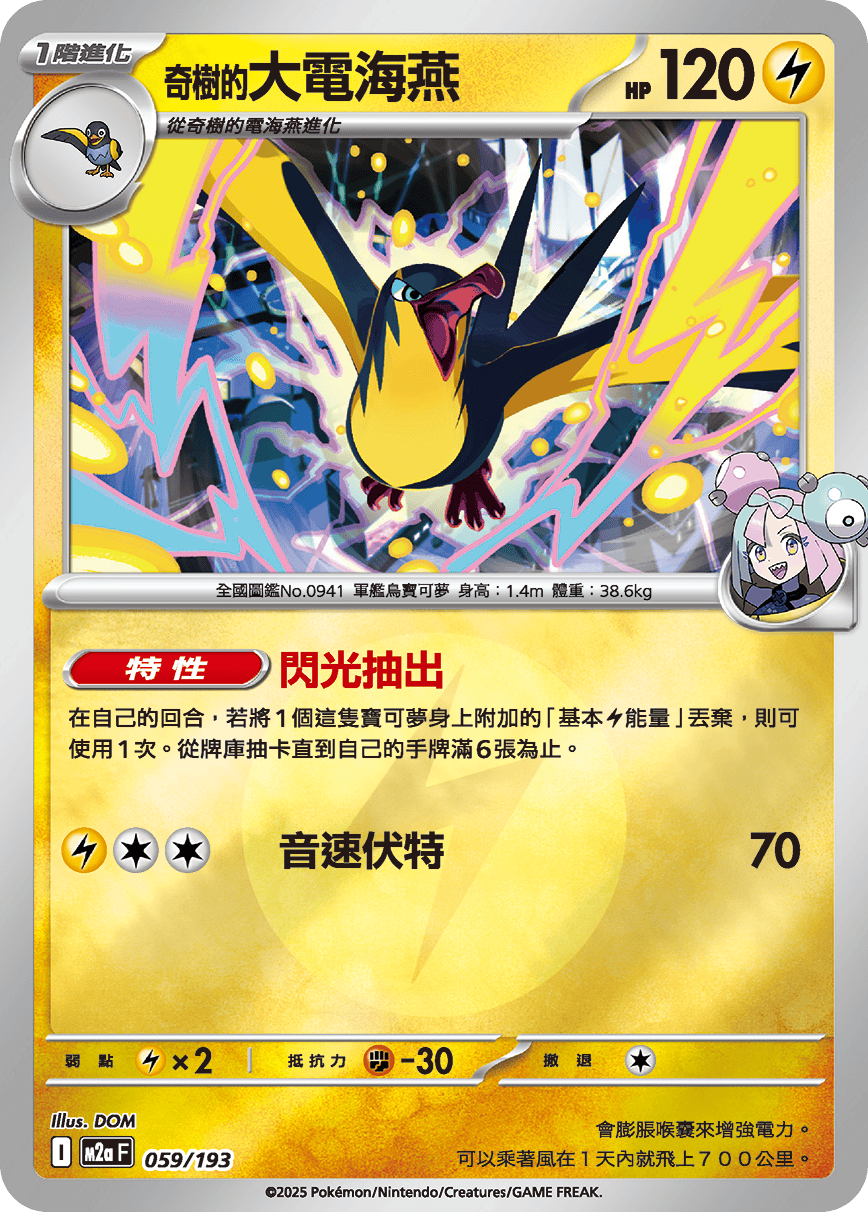 在自己的回合,若將1個這隻寶可夢身上附加的「基本【雷】能量」丟棄,則可使用1次。從牌庫抽卡直到自己的手牌滿6張為止。