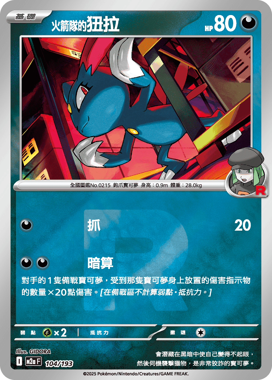 會潛藏在黑暗中使自己變得 不起眼,然後伺機襲擊獵物, 是非常狡詐的寶可夢。