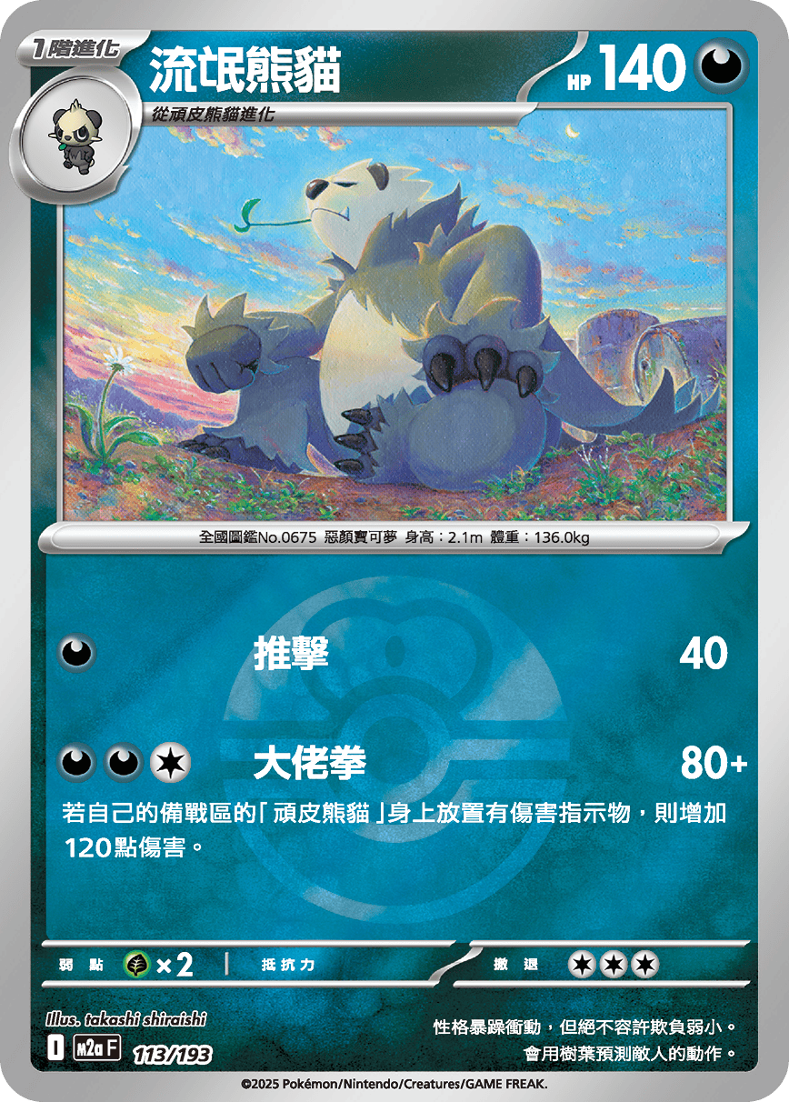 若自己的備戰區的「頑皮熊貓」身上放置有傷害指示物,則增加120點傷害。