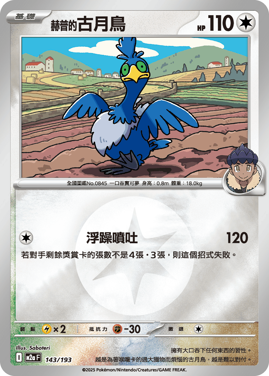 擁有大口吞下任何東西的習性。 越是為著喉嚨卡的過大獵物而 煩惱的古月鳥,越是難以對付。