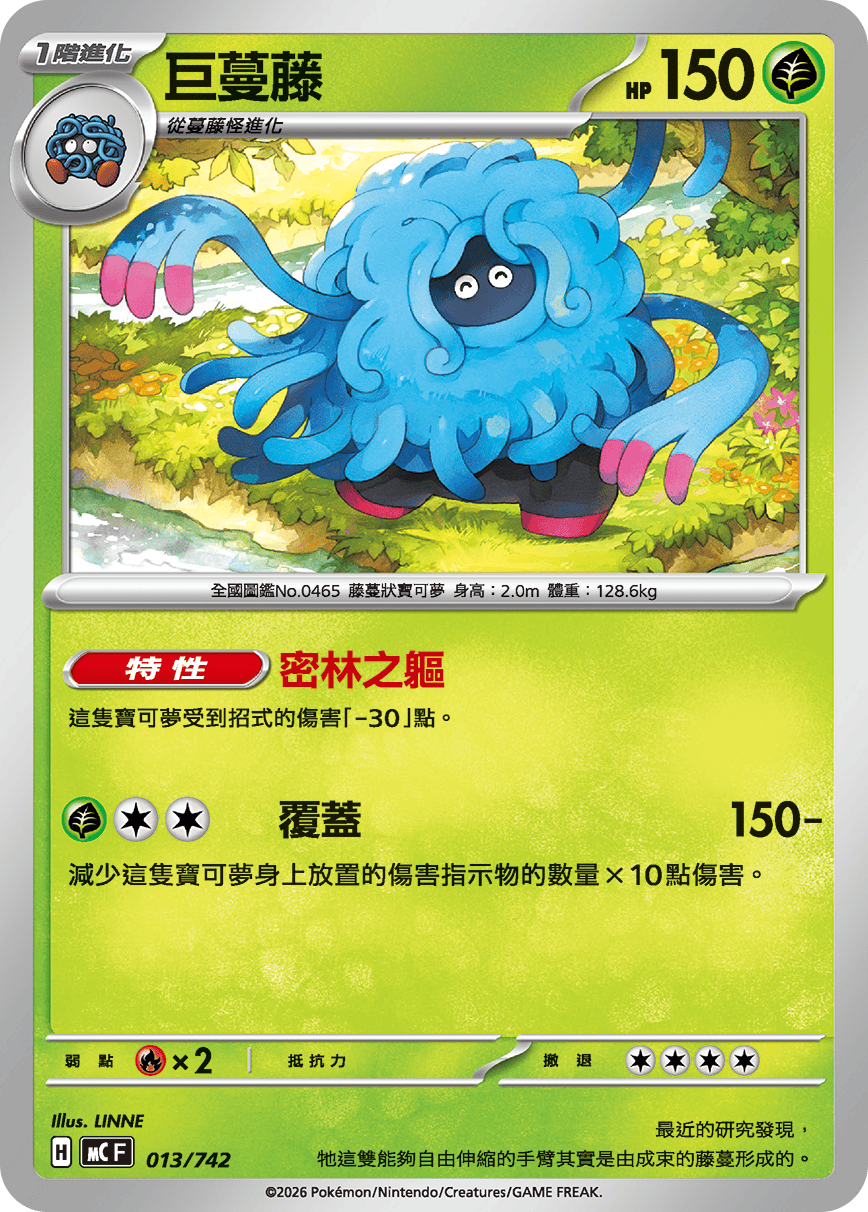 最近的研究發現,牠這雙 能夠自由伸縮的手臂其實 是由成束的藤蔓形成的。
