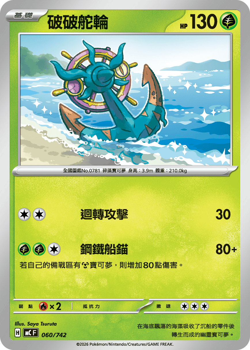 在海底飄蕩的海藻 吸收了沉船的零件後 轉生而成的幽靈寶可夢。