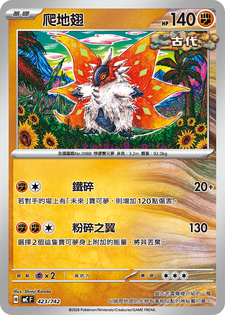 與古老書籍裡介紹的一種 叫做爬地翅的生物有著 相似點的神秘寶可夢。
