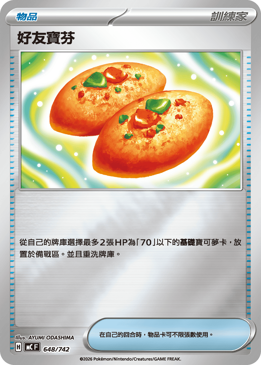 從自己的牌庫選擇最多2張HP為「70」以下的【基礎】寶可夢卡,放置於備戰區。並且重洗牌庫。