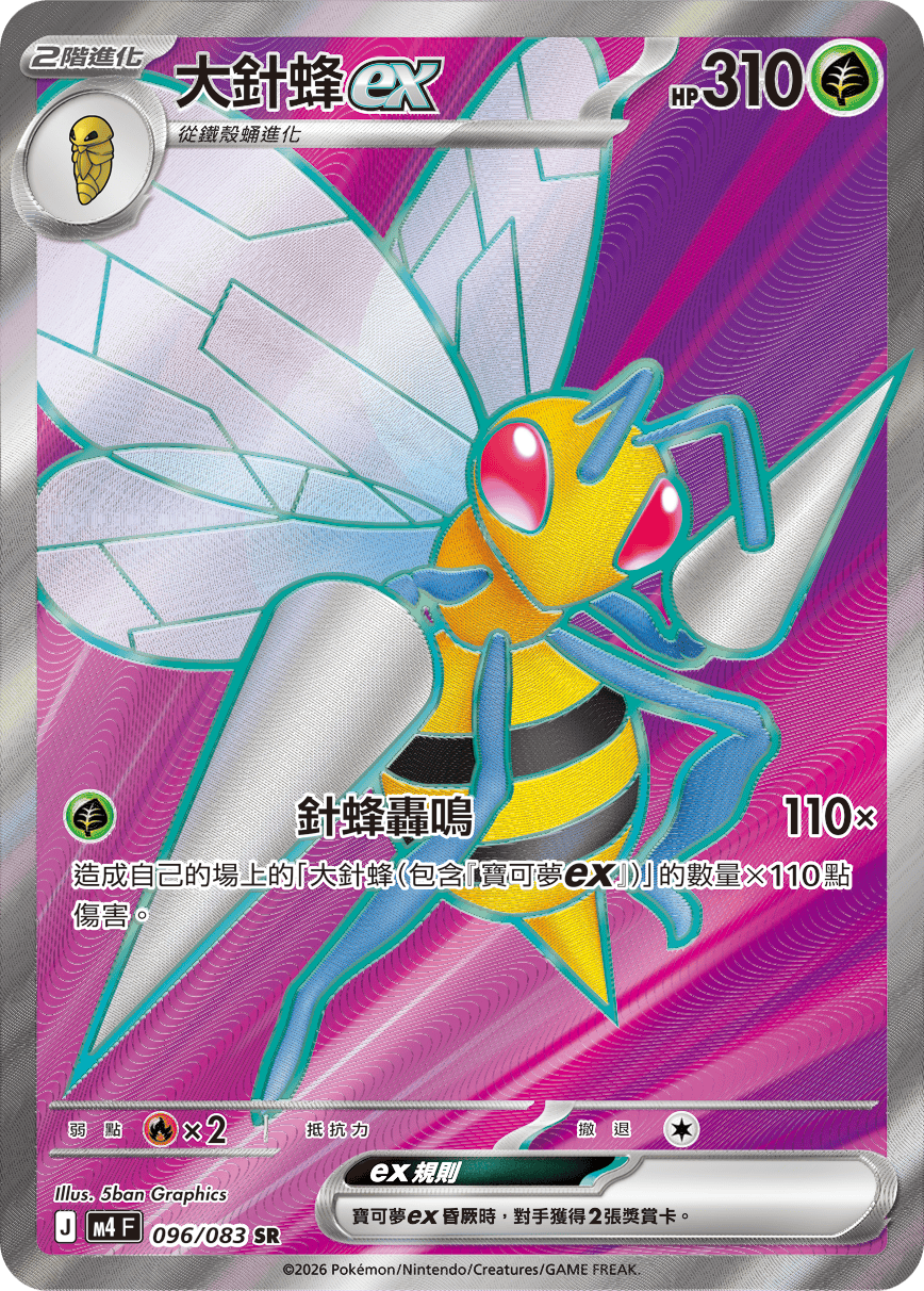 造成自己的場上的「大針蜂(包含『寶可夢【ex】』)」的數量×110點傷害。