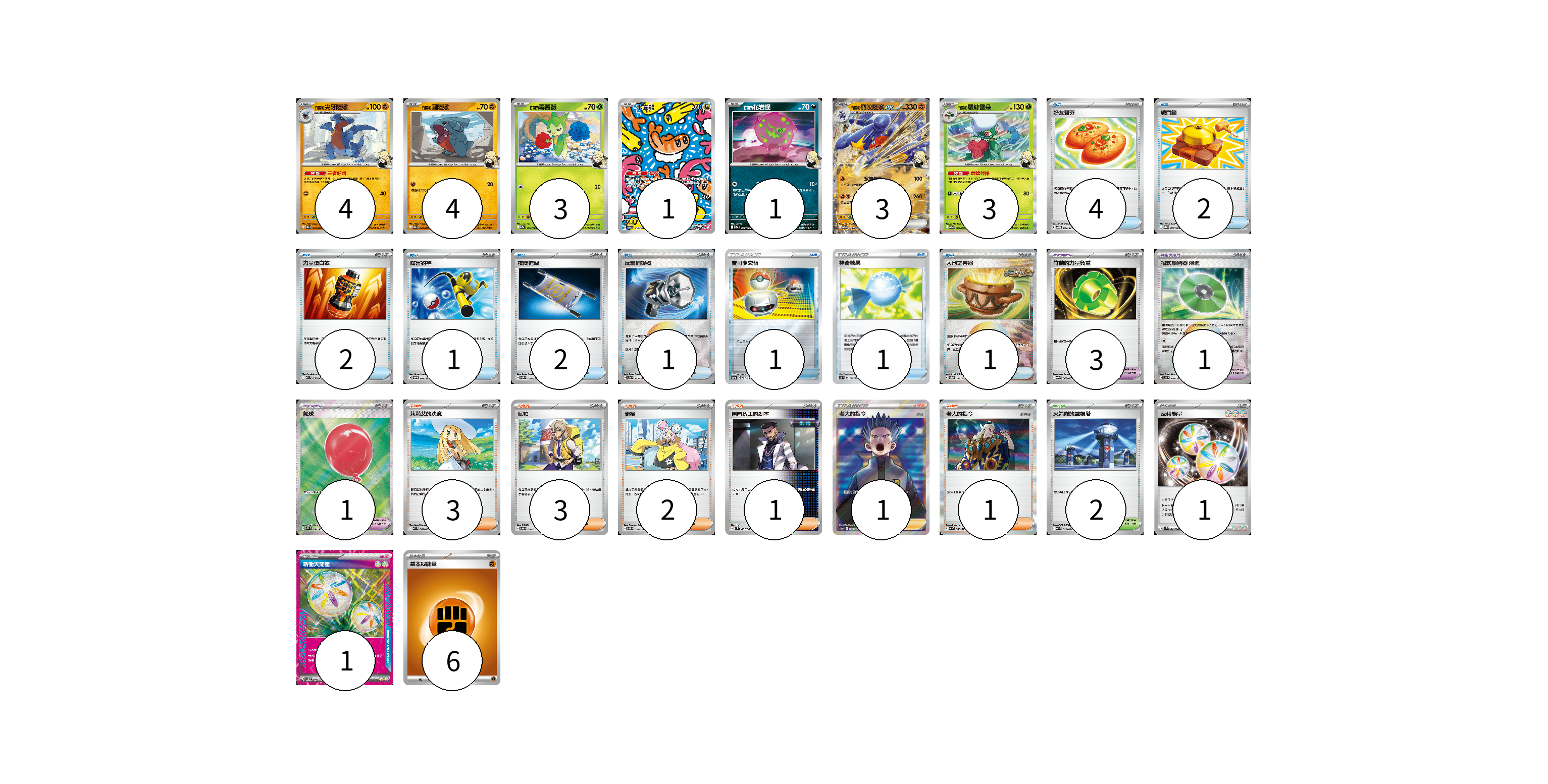 牌組構築方案 以此牌組為基礎新構築牌組 顯示卡面 顯示列表 寶可夢卡(19) 4 4 3 1 1 3 3 寶可夢道具(5) 3 1 1 物品卡(15) 4 2 2 1 2 1 1 1 1 支援者卡(11) 3 3 2 1 1 1 競技場卡(2) 2 能量卡(8) 1 1 6 寶可夢卡(19) 卡牌名稱 張數 卡牌名稱 張數 <竹蘭的>尖牙陸鯊 SV9a 043/063 04 <竹蘭的>圓陸鯊 SV9a 042/063 04 <竹蘭的>毒薔薇 SV9a 004/063 03 米立龍 SV6 112/101 01 <竹蘭的>花岩怪 SV9a 050/063 01 <竹蘭的>烈咬陸鯊ex SV9a 044/063 03 <竹蘭的>羅絲雷朵 SV9a 005/063 03 寶可夢道具(5) 卡牌名稱 張數 卡牌名稱 張數 竹蘭的力量負重 SV9a 060/063 03 招式學習器 演進 SV8a 160/187 01 氣球 M1L 084/063 01 物品卡(15) 卡牌名稱 張數 卡牌名稱 張數 好友寶芬 SVOM 012/021 04 戰鬥鑼 M1L 059/063 02 力量蛋白飲 M1L 058/063 02 厲害釣竿 SVOM 011/021 01 夜間擔架 SVOM 016/021 02 反擊捕捉器 SV8a 139/187 01 寶可夢交替 SO 021/030 01 神奇糖果 SCB 124/156 01 大地之容器 SV8a 143/187 01 支援者卡(11) 卡牌名稱 張數 卡牌名稱 張數 莉莉艾的決意 M1L 062/063 03 派帕 SVOD 018/020 03 奇樹 SVOM 018/021 02 弗圖博士的劇本 SV4M 065/066 01 老大的指令(赤日) S12a 250/172 01 老大的指令 SV1a 069/073 01 競技場卡(2) 卡牌名稱 張數 卡牌名稱 張數 火箭隊的監視塔 SV10 096/098 02 能量卡(8) 卡牌名稱 張數 卡牌名稱 張數 反轉能量 SVK 041/042 01 新衝天能量 SV5K 071/071 01 基本【鬥】能量 SVAM FIG 06 以此牌組為基礎新構築牌組 牌組編碼 AbeWhk-hIjXaS-ENdwKr copy 列印牌組單 牌組編碼已複製 分享至SNS