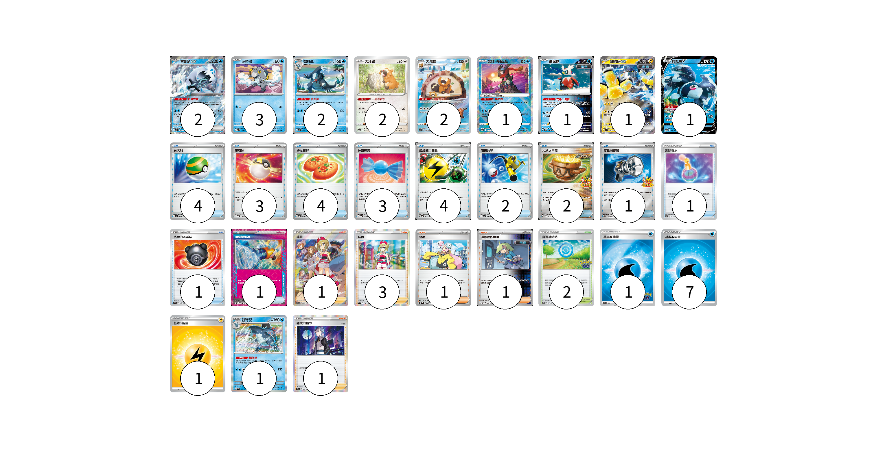 牌組構築方案 以此牌組為基礎新構築牌組 顯示卡面 顯示列表 寶可夢卡(16) 2 3 2 2 2 1 1 1 1 1 物品卡(26) 4 3 4 3 4 2 2 1 1 1 1 支援者卡(7) 1 3 1 1 1 競技場卡(2) 2 能量卡(9) 1 7 1 寶可夢卡(16) 卡牌名稱 張數 卡牌名稱 張數 古劍豹ex SV4a 054/190 02 涼脊龍 SV2P 024/071 03 戟脊龍 SV4a 053/190 02 大牙狸 S12a 121/172 02 大尾狸 S12a 200/172 02 光輝甲賀忍蛙 S12a 033/172 01 鐵包袱 SV4M 020/066 01 鐵臂膀ex SV4M 027/066 01 霓虹魚V S12a 026/172 01 戟脊龍 SV2P 027/071 01 物品卡(26) 卡牌名稱 張數 卡牌名稱 張數 巢穴球 SV1S 070/078 04 高級球 SVHK 013/022 03 好友寶芬 SV5K 063/071 04 神奇糖果 SV3a 053/062 03 超級能量回收 SV4a 157/190 04 厲害釣竿 SV4a 158/190 02 大地之容器 SV-P 084/SV-P 02 反擊捕捉器 SV-P 083/SV-P 01 消除香水 S9a 063/067 01 洗翠的沉重球 S12a 140/172 01 頂尖捕捉器 SV5M 062/071 01 支援者卡(7) 卡牌名稱 張數 卡牌名稱 張數 珠貝 S12a 236/172 01 珠貝 S12a 149/172 03 奇樹 SV2D 069/071 01 暗碼迷的解讀 SV5M 067/071 01 老大的指令(赤日) S12a 161/172 01 競技場卡(2) 卡牌名稱 張數 卡牌名稱 張數 寶可補給站 S10b 071/071 02 能量卡(9) 卡牌名稱 張數 卡牌名稱 張數 基本水能量 S10b WAT 01 基本【水】能量 SI WAT 07 基本【雷】能量 SI LIG 01 以此牌組為基礎新構築牌組 牌組編碼 BIRUFM-MPSZci-ackmeM copy 列印牌組單 牌組編碼已複製 分享至SNS