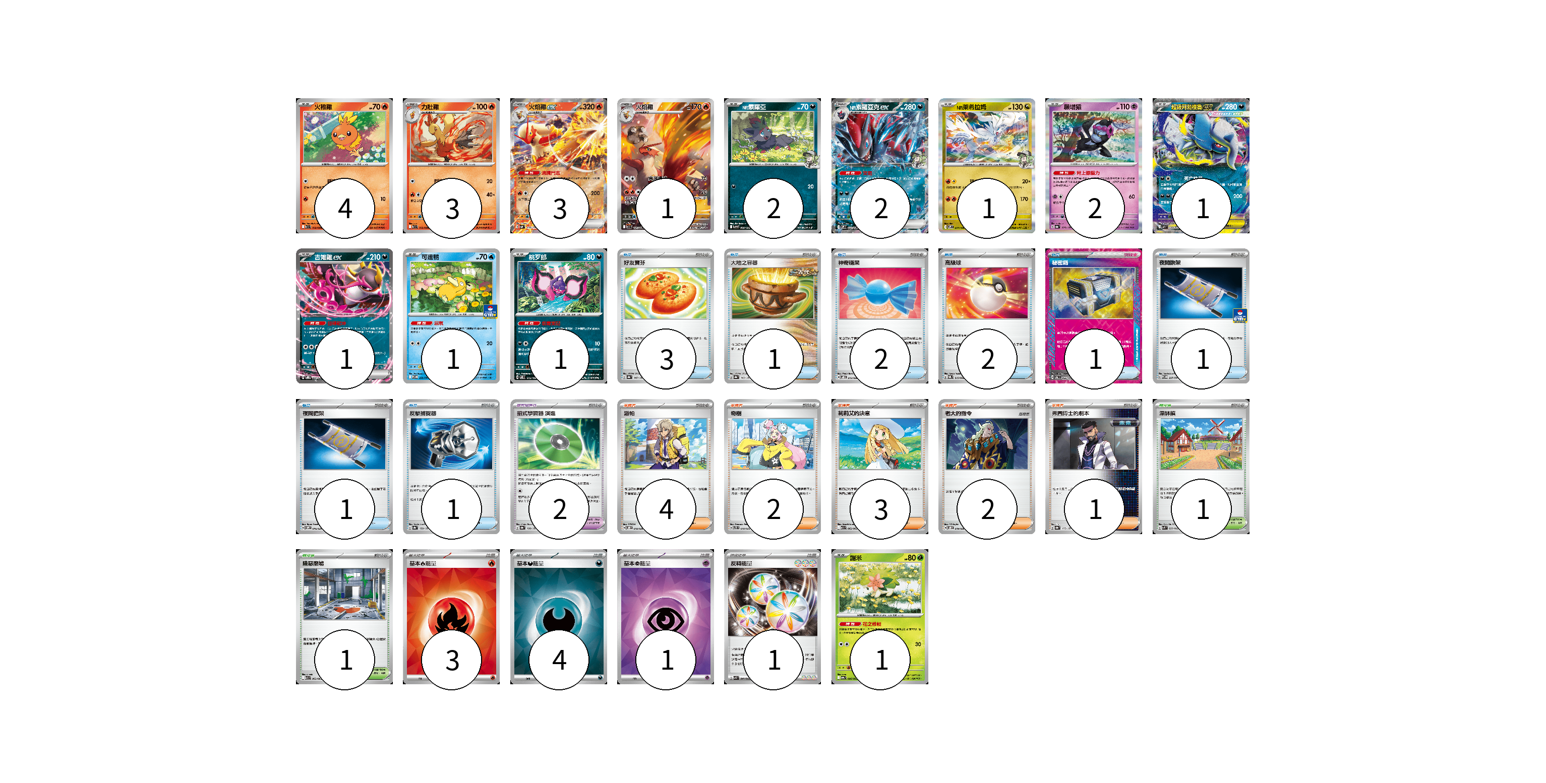 牌組構築方案 以此牌組為基礎新構築牌組 顯示卡面 顯示列表 寶可夢卡(23) 4 3 3 1 2 2 1 2 1 1 1 1 1 寶可夢道具(2) 2 物品卡(12) 3 1 2 2 1 1 1 1 支援者卡(12) 4 2 3 2 1 競技場卡(2) 1 1 能量卡(9) 3 4 1 1 寶可夢卡(23) 卡牌名稱 張數 卡牌名稱 張數 火稚雞 SV10 018/098 04 力壯雞 SV10 019/098 03 火焰雞ex SVM 016/175 03 火焰雞 SV10 101/098 01 N的索羅亞 SV9 060/100 02 N的索羅亞克ex SV9 061/100 02 N的萊希拉姆 SV9 074/100 01 願增猿 SV8a 075/187 02 超級阿勃梭魯ex M1L 038/063 01 吉雉雞ex SVOD 004/020 01 可達鴨 SV-P 220/SV-P 01 桃歹郎 SV8 075/106 01 謝米 SV9a 006/063 01 寶可夢道具(2) 卡牌名稱 張數 卡牌名稱 張數 招式學習器 演進 SV8a 160/187 02 物品卡(12) 卡牌名稱 張數 卡牌名稱 張數 好友寶芬 SV8a 147/187 03 大地之容器 SV8a 143/187 01 神奇糖果 SVOD 013/020 02 高級球 SVQL 015/022 02 秘密箱 SV6 092/101 01 夜間擔架 SV-P 227/SV-P 01 夜間擔架 SVOM 016/021 01 反擊捕捉器 SV8a 139/187 01 支援者卡(12) 卡牌名稱 張數 卡牌名稱 張數 派帕 SVOD 018/020 04 奇樹 SVTS 018/022 02 莉莉艾的決意 M1L 062/063 03 老大的指令 SVOD 019/020 02 弗圖博士的劇本 SV8a 175/187 01 競技場卡(2) 卡牌名稱 張數 卡牌名稱 張數 深缽鎮 SVK 039/042 01 險惡廢墟 M1L 063/063 01 能量卡(9) 卡牌名稱 張數 卡牌名稱 張數 基本【火】能量 SVQL FIR 03 基本【惡】能量 SVOM DAR 04 基本【超】能量 SVOD PSY 01 反轉能量 SVK 041/042 01 以此牌組為基礎新構築牌組 牌組編碼 BNqUvS-gBueeT-XQjkIO copy 列印牌組單 牌組編碼已複製 分享至SNS