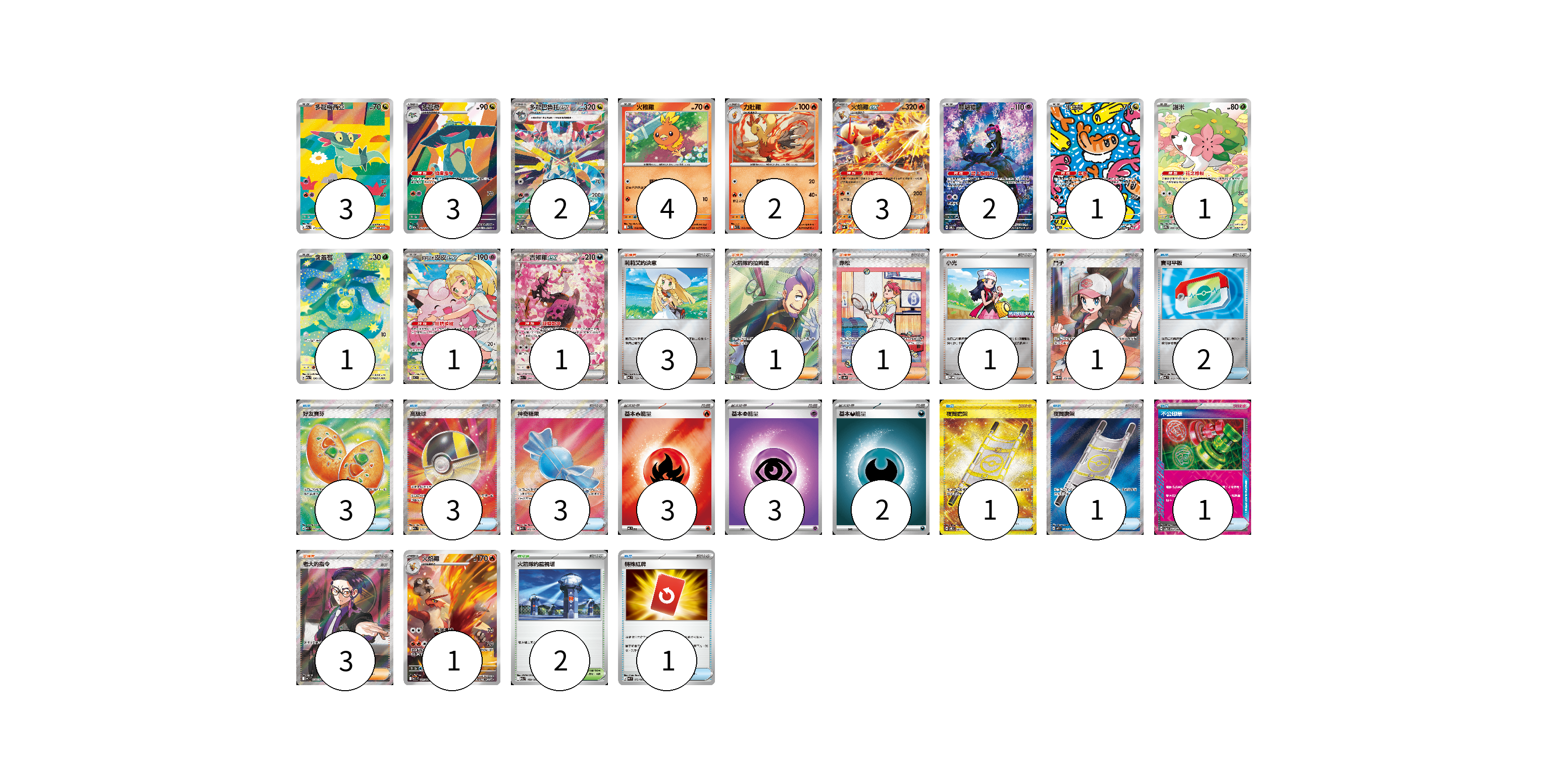 牌組構築方案 以此牌組為基礎新構築牌組 顯示卡面 顯示列表 寶可夢卡(25) 3 3 2 4 2 3 2 1 1 1 1 1 1 物品卡(15) 2 3 3 3 1 1 1 1 支援者卡(10) 3 1 1 1 1 3 競技場卡(2) 2 能量卡(8) 3 3 2 寶可夢卡(25) 卡牌名稱 張數 卡牌名稱 張數 多龍梅西亞 M2a 211/193 03 多龍奇 M2a 212/193 03 多龍巴魯托ex SV8a 221/187 02 火稚雞 SV10 018/098 04 力壯雞 SV10 019/098 02 火焰雞ex SVM 016/175 03 願增猿 SV6 107/101 02 米立龍 SV6 112/101 01 謝米 SV9a 066/063 01 含羞苞 M2a 196/193 01 莉莉艾的皮皮ex MC 765/742 01 吉雉雞ex M2a 244/193 01 火焰雞 SV10 101/098 01 物品卡(15) 卡牌名稱 張數 卡牌名稱 張數 寶可平板 MC 662/742 02 好友寶芬 M1S 081/063 03 高級球 M2a 216/193 03 神奇糖果 M1S 082/063 03 夜間擔架 SV8 137/106 01 夜間擔架 M1L 083/063 01 不公印章 SV5a 053/066 01 特殊紅牌 M4 072/083 01 支援者卡(10) 卡牌名稱 張數 卡牌名稱 張數 莉莉艾的決意 MC 729/742 03 火箭隊的拉姆達 SV10 122/098 01 赤松 SV8a 227/187 01 小光 M-P 028/M-P 01 鬥子 SV11W 166/086 01 老大的指令(烏羽) MC 760/742 03 競技場卡(2) 卡牌名稱 張數 卡牌名稱 張數 火箭隊的監視塔 M2a 189/193 02 能量卡(8) 卡牌名稱 張數 卡牌名稱 張數 基本【火】能量 MC FIR 03 基本【超】能量 MBD PSY 03 基本【惡】能量 MC DAR 02 以此牌組為基礎新構築牌組 牌組編碼 BczJic-XcHvMQ-fJoZTx copy 列印牌組單 牌組編碼已複製 分享至SNS
