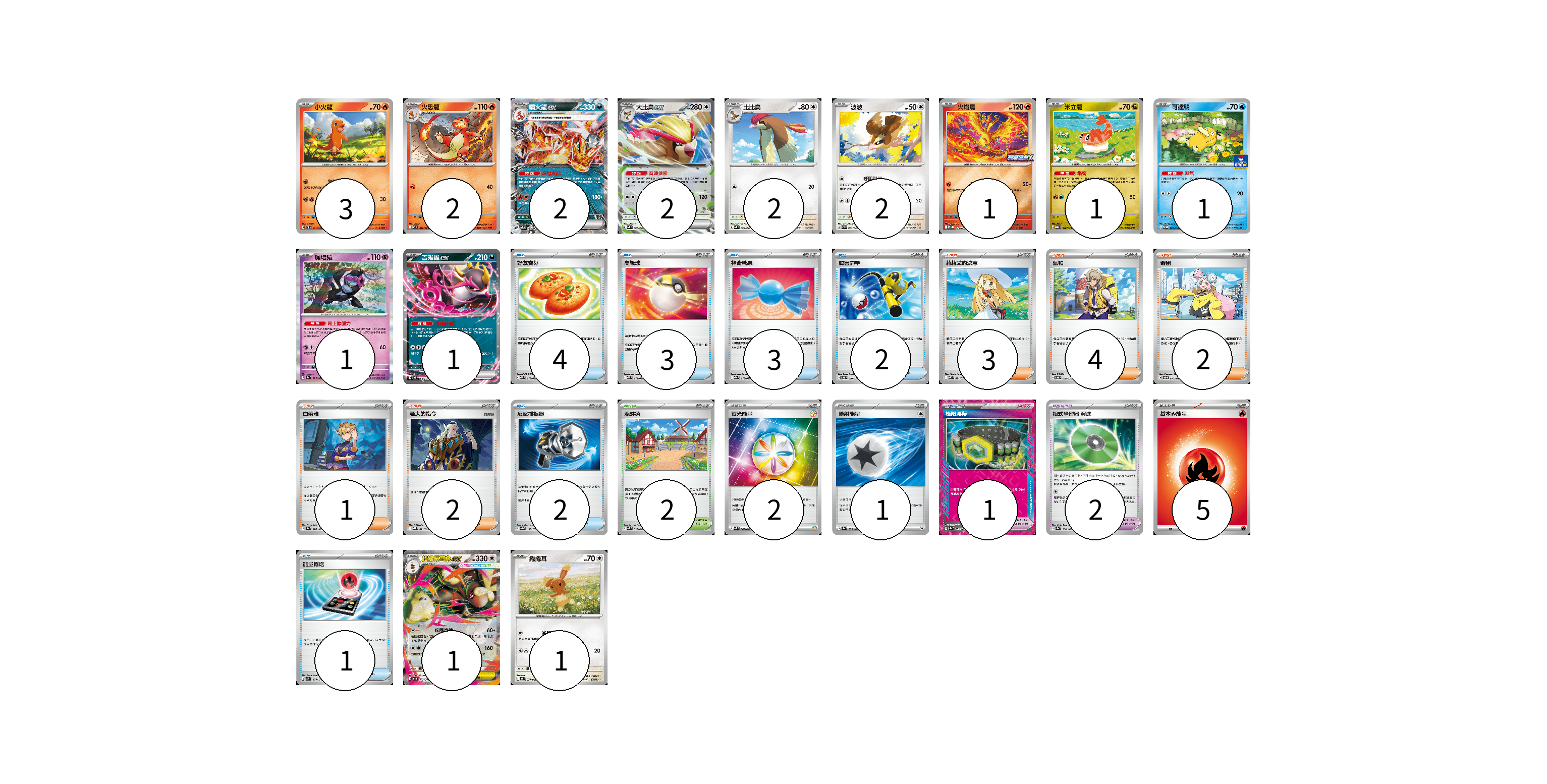 牌組構築方案 以此牌組為基礎新構築牌組 顯示卡面 顯示列表 寶可夢卡(20) 3 2 2 2 2 2 1 1 1 1 1 1 1 寶可夢道具(3) 1 2 物品卡(15) 4 3 3 2 2 1 支援者卡(12) 3 4 2 1 2 競技場卡(2) 2 能量卡(8) 2 1 5 寶可夢卡(20) 卡牌名稱 張數 卡牌名稱 張數 小火龍 SVTL 001/021 03 火恐龍 M2 012/080 02 噴火龍ex SVTL 006/021 02 大比鳥ex SVK 005/042 02 比比鳥 SVK 004/042 02 波波 SVK 003/042 02 火焰鳥 M-P 022/M-P 01 米立龍 MBG 010/022 01 可達鴨 SV-P 220/SV-P 01 願增猿 SV8a 075/187 01 吉雉雞ex SVOD 004/020 01 超級長耳兔ex M2 072/080 01 捲捲耳 M2 071/080 01 寶可夢道具(3) 卡牌名稱 張數 卡牌名稱 張數 極限腰帶 SV8a 159/187 01 招式學習器 演進 SV8a 160/187 02 物品卡(15) 卡牌名稱 張數 卡牌名稱 張數 好友寶芬 MBD 013/022 04 高級球 MBD 014/022 03 神奇糖果 MBG 013/022 03 厲害釣竿 SVOD 010/020 02 反擊捕捉器 SV8a 139/187 02 能量輸送 SVM 128/175 01 支援者卡(12) 卡牌名稱 張數 卡牌名稱 張數 莉莉艾的決意 MBD 021/022 03 派帕 SVOD 018/020 04 奇樹 SVOD 016/020 02 白蕾雅 SV8a 176/187 01 老大的指令 MBG 021/022 02 競技場卡(2) 卡牌名稱 張數 卡牌名稱 張數 深缽鎮 SVK 039/042 02 能量卡(8) 卡牌名稱 張數 卡牌名稱 張數 夜光能量 SVK 042/042 02 噴射能量 SV8a 185/187 01 基本【火】能量 M-P FIR 05 以此牌組為基礎新構築牌組 牌組編碼 DyHDBQ-PbfbNM-NxvVTN copy 列印牌組單 牌組編碼已複製 分享至SNS