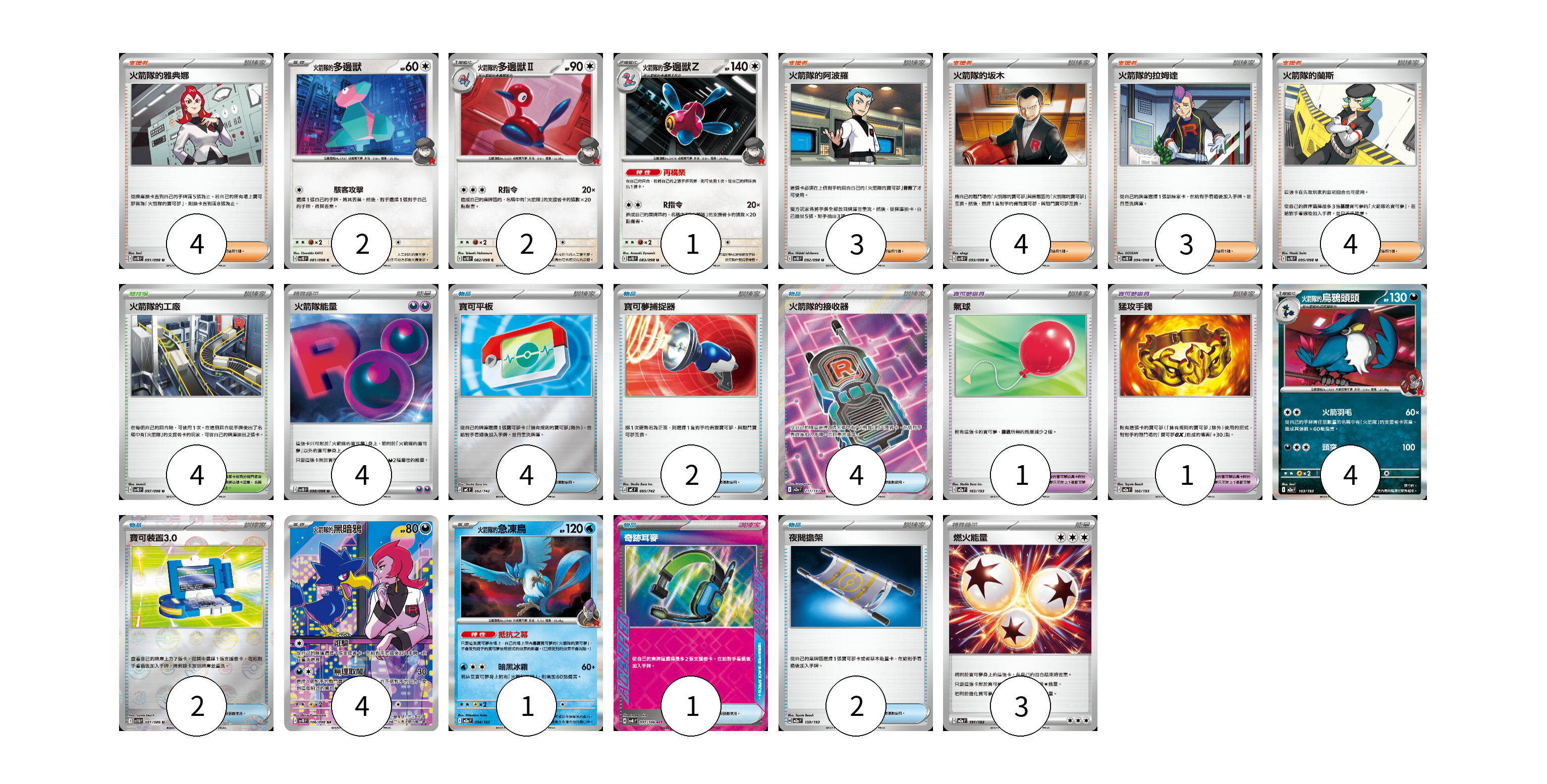卡牌名稱 張數
